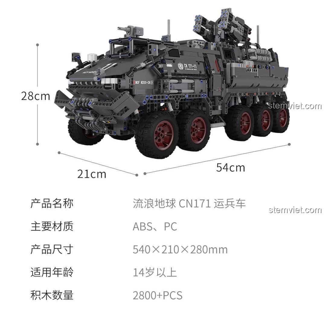 Chào mừng bạn đến với thế giới đầy kịch tính của bộ lắp ráp Xe Vận Chuyển Quân Sự CN171-11 Lưu Lạc Địa Cầu ONEBOT OBLDQ16AIQI! Đây không chỉ là một món đồ chơi thông thường, mà còn là một phần của câu chuyện khoa học viễn tưởng vĩ đại, lấy cảm hứng từ bộ phim bom tấn ‘Lưu Lạc Địa Cầu’ (The Wandering Earth) của Trung Quốc, ra mắt vào năm 2019. Trong bối cảnh Trái Đất phải di chuyển khỏi hệ Mặt Trời để tránh thảm họa, chiếc xe vận chuyển quân sự CN171-11 này đóng vai trò cực kỳ quan trọng. Nó là biểu tượng của sự kiên cường, sức mạnh và tinh thần đồng đội của nhân loại trong cuộc chiến sinh tồn. Với bộ lắp ráp đồ chơi mô hình ONEBOT này, con trai 14 tuổi của bạn sẽ được tái hiện lại những cảnh tượng hoành tráng, những nhiệm vụ giải cứu đầy thử thách, và cảm nhận được sự vĩ đại của một cỗ máy chiến đấu được thiết kế để vượt qua mọi giới hạn. Hãy cùng khám phá lịch sử và ý nghĩa đằng sau chiếc xe huyền thoại này, và biến nó thành hiện thực ngay trên bàn chơi của bạn!