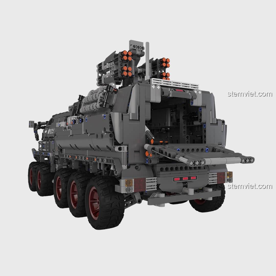 Bộ lắp ráp Xe Vận Chuyển Quân Sự CN171-11 Lưu Lạc Địa Cầu ONEBOT OBLDQ16AIQI là một kiệt tác của kỹ thuật và thẩm mỹ. Với màu xám chủ đạo, chiếc xe toát lên vẻ mạnh mẽ, bền bỉ và sẵn sàng cho mọi cuộc chiến. Kích thước ấn tượng 54cm chiều dài, 21cm chiều rộng và 28cm chiều cao, biến nó thành một mô hình siêu lớn, cực kỳ nổi bật trong bộ sưu tập của bất kỳ người hâm mộ nào. Từng chi tiết của đồ chơi xây dựng này được tái hiện một cách tỉ mỉ, từ hệ thống treo 10 bánh hầm hố, đảm bảo khả năng di chuyển linh hoạt trên mọi địa hình, cho đến tháp pháo xoay và nâng hạ được trang bị hệ thống phóng tên lửa, sẵn sàng đối phó với mọi mối đe dọa. Các cửa bên và cửa đuôi xe cũng có thể mở linh hoạt, tăng thêm tính chân thực và khả năng tương tác. Đây thực sự là một mô hình đồ chơi mô hình ONEBOT OBLDQ16AIQI không chỉ đẹp mắt mà còn thể hiện sự chính xác trong từng đường nét thiết kế, mang đến trải nghiệm lắp ráp và trưng bày đỉnh cao cho con trai 14 tuổi của bạn.