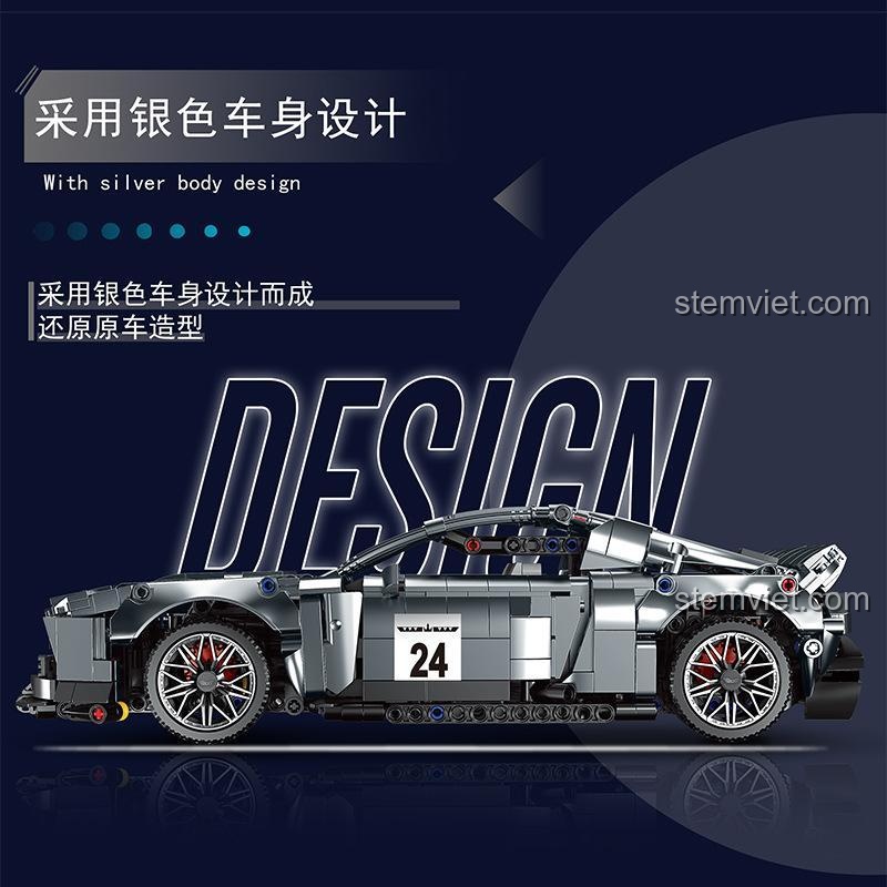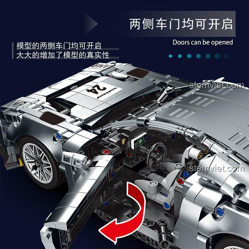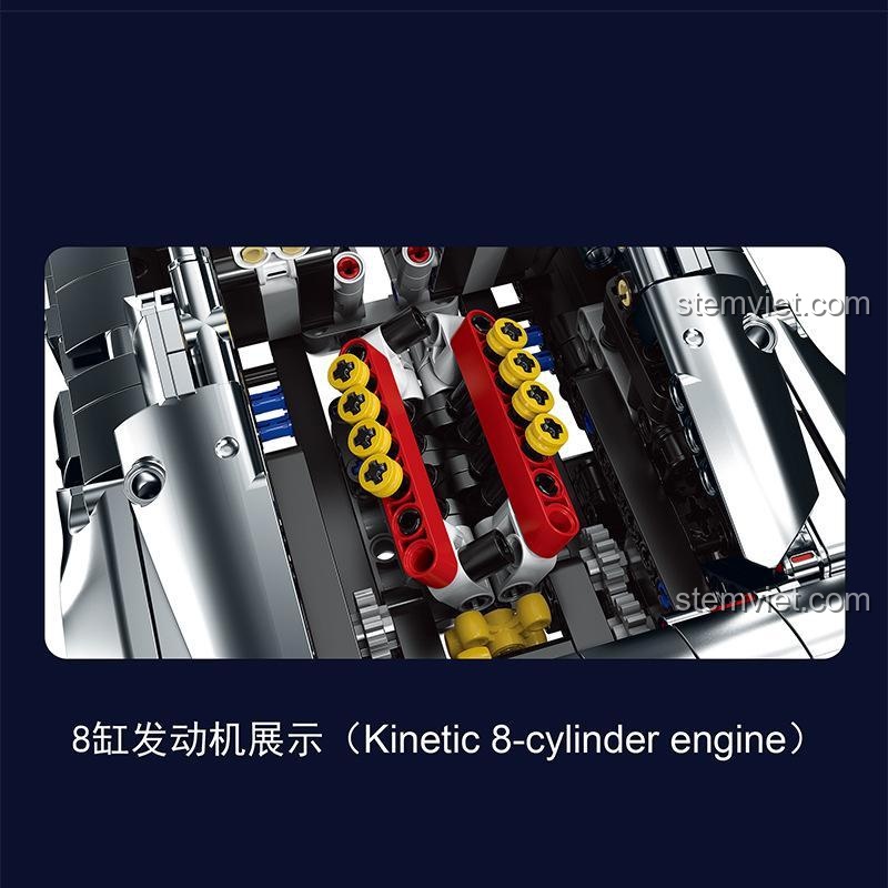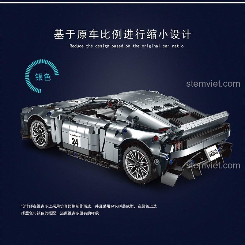 Mô hình này sở hữu nhiều tính năng ấn tượng như bánh lái liên kết với bánh xe, động cơ 8 xi lanh có thể chuyển động khi xe di chuyển, nắp capo và hai bên cửa xe đều có thể mở được, tăng tính chân thực và tương tác cho đồ chơi xây dựng siêu xe này.