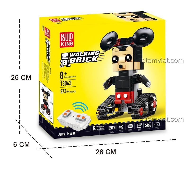 Biến nhân vật hoạt hình huyền thoại thành một robot điều khiển từ xa cực ngầu với bộ lắp ráp Mould King 13043 Robot Chuột Mickey! Với 373 mảnh ghép chất lượng cao, tương thích hoàn hảo với LEGO®, bé trai từ 8 tuổi sẽ có những giờ phút lắp ráp đầy say mê và sáng tạo. Đây không chỉ là một mô hình tĩnh, mà là một robot thực thụ với khả năng di chuyển tiến, lùi, trái, phải bằng bánh xích mạnh mẽ thông qua bộ điều khiển RC 2.4Ghz. Sản phẩm sử dụng pin sạc tiện lợi, là lựa chọn thay thế tiết kiệm cho LEGO® mà vẫn đảm bảo trải nghiệm tuyệt vời. Hãy để bé khám phá cơ chế truyền động, rèn luyện tư duy logic và tận hưởng niềm vui điều khiển nhân vật mình yêu thích. Một món quà hoàn hảo, vừa giải trí vừa giáo dục!