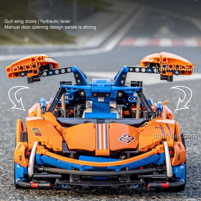 Từng đường nét, từng chi tiết trên mô hình đều được chăm chút tỉ mỉ, từ những đường cong khí động học mượt mà cho đến các bộ phận cơ khí phức tạp. Đặc biệt, tính năng cửa cánh chim độc đáo không chỉ tăng thêm vẻ đẹp thẩm mỹ mà còn thể hiện sự tinh xảo trong thiết kế của bộ đồ chơi lắp ghép Siêu xe Speedtail này. Đây chắc chắn sẽ là điểm nhấn nổi bật trong bộ sưu tập của bất kỳ tín đồ xe hơi nào, mang đến trải nghiệm thị giác mãn nhãn và khơi gợi niềm đam mê kỹ thuật.