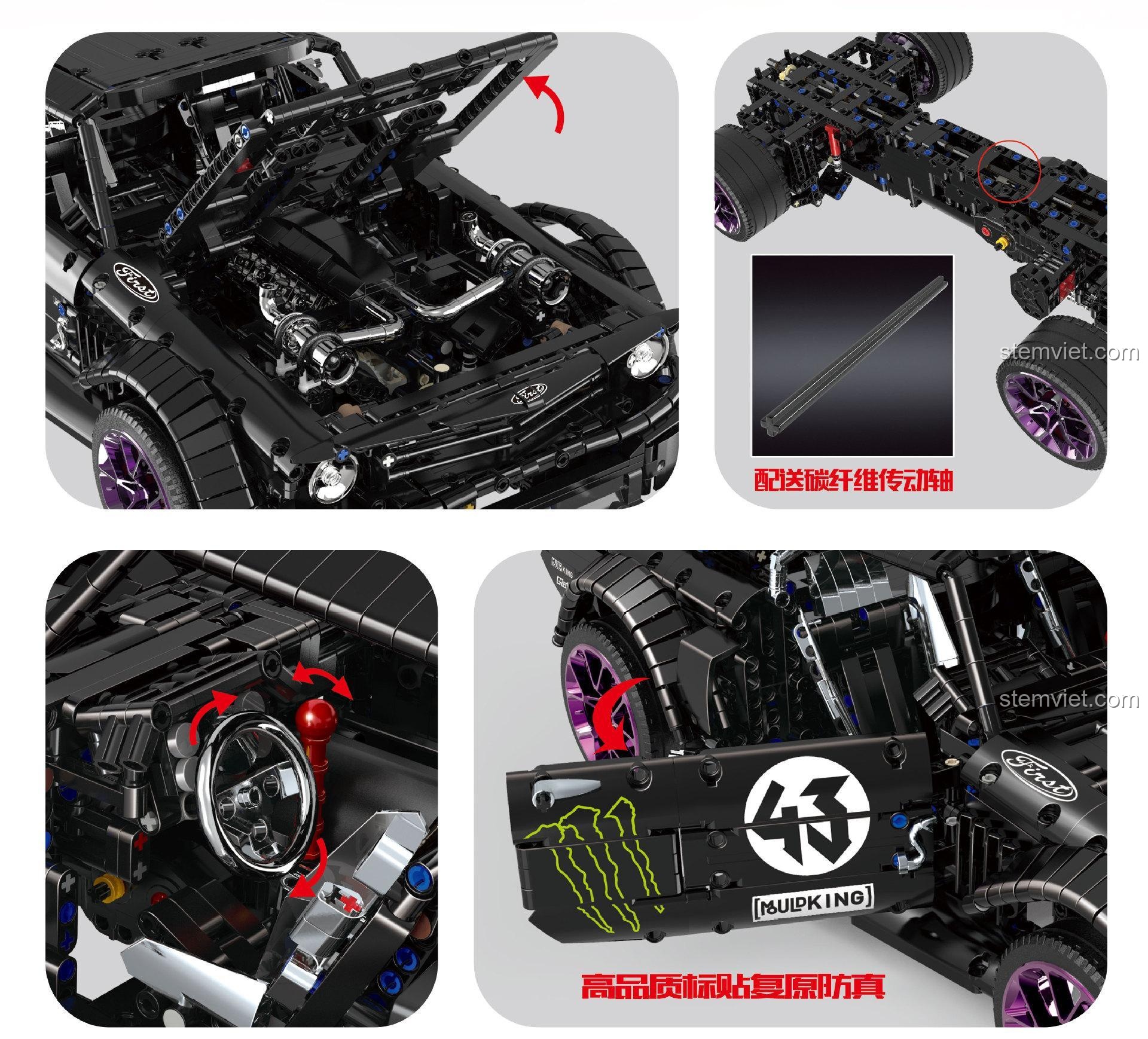 ⚙️ Trái Tim Gầm Rú: Những Tính Năng Đáng Kinh Ngạc Của Xe đua Ford Mustang Hoonicorn V2 Mould King ⚙️