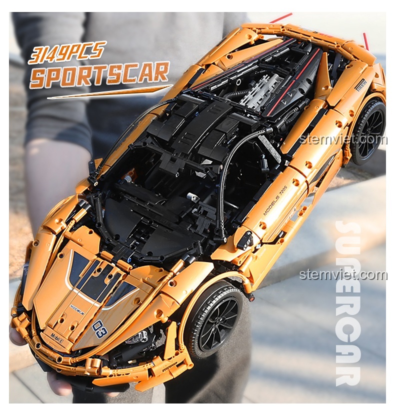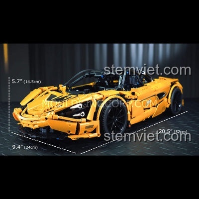 Mô hình McLaren 720S này là một minh chứng cho sự tỉ mỉ và chính xác. Với tỉ lệ 1:8 ấn tượng, chiếc siêu xe dài 52cm, rộng 24cm và cao 14.5cm, mang đến một vẻ ngoài hoành tráng và chân thực. Màu cam chủ đạo rực rỡ kết hợp với các chi tiết đen tạo nên sự tương phản mạnh mẽ, đúng như phiên bản thật. Từng đường nét khí động học, từ nắp capo vuốt dài đến phần đuôi xe mạnh mẽ, đều được tái hiện một cách hoàn hảo. Đặc biệt, các chi tiết mô phỏng như đèn pha, lưới tản nhiệt, và bộ khuếch tán gió phía sau đều được chăm chút tỉ mỉ, mang lại cảm giác như đang chiêm ngưỡng một chiếc siêu xe thu nhỏ. Đây là một đồ chơi mô hình Mould King thực sự đẳng cấp, thể hiện sự tinh xảo trong từng mảnh ghép.