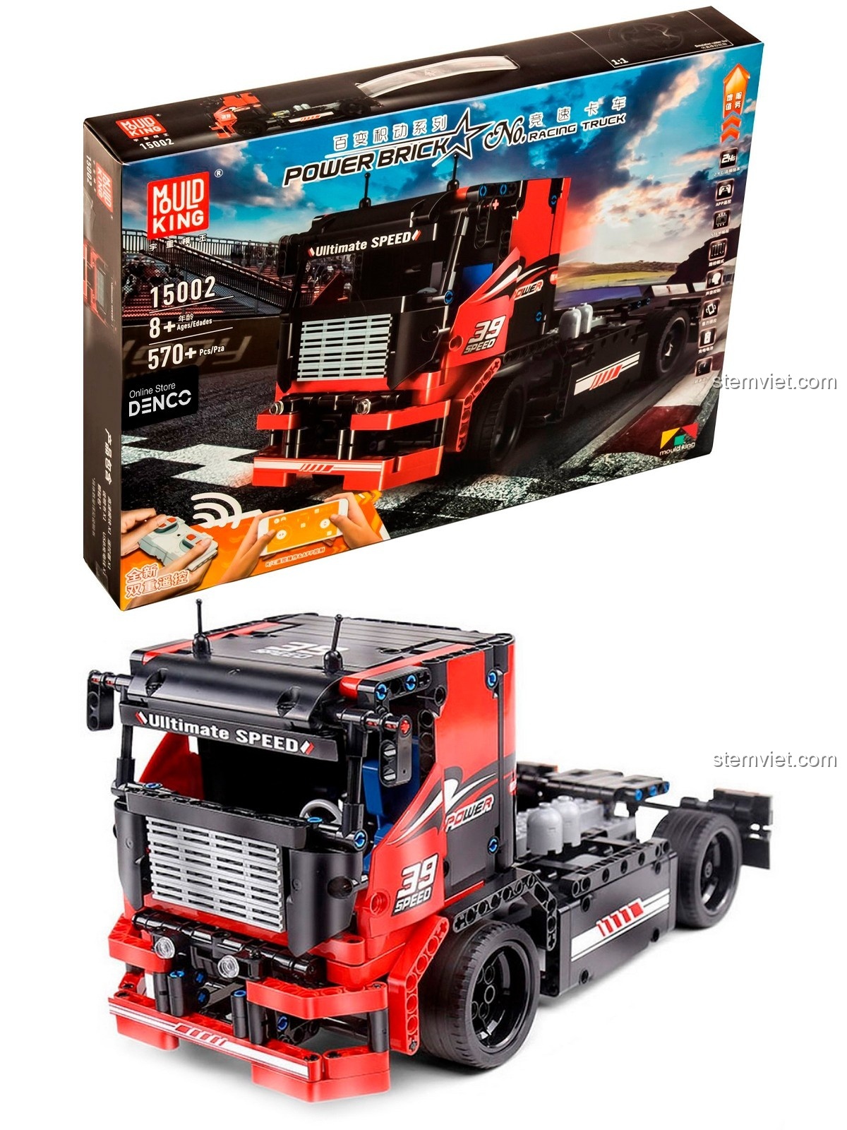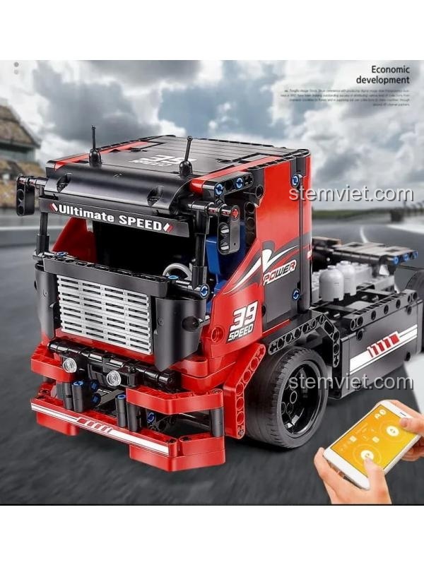 Đây chính là phần hấp dẫn nhất! Xe Đầu Kéo Đua Mould King 15002 không phải là mô hình tĩnh. Nó được trang bị bộ động cơ và pin sạc hiệu suất cao, biến nó thành một chiếc xe RC thực thụ. Điểm đặc biệt là khả năng điều khiển kép: