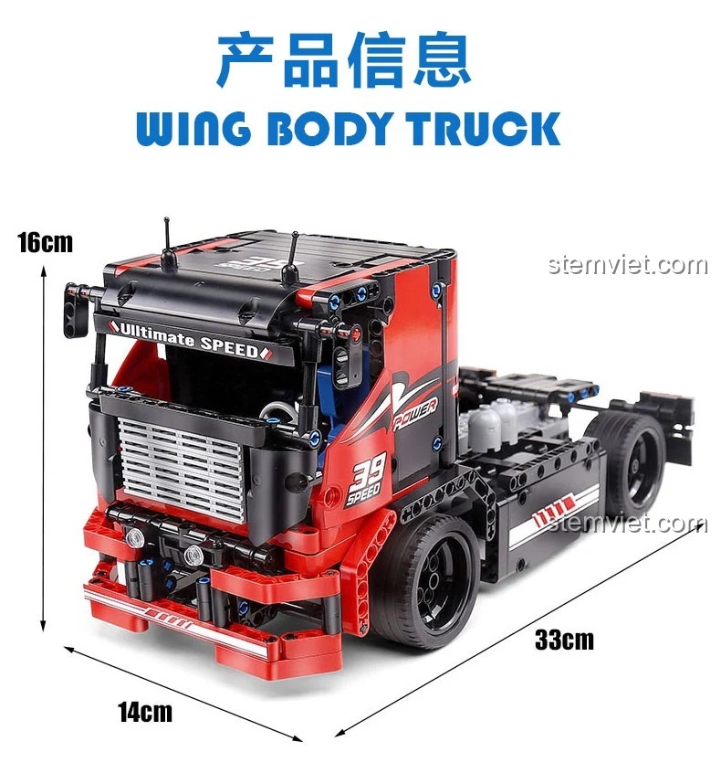 Ngay từ cái nhìn đầu tiên, Mô hình Xe Tải Tốc Độ 15002 đã gây ấn tượng mạnh mẽ với tông màu đỏ-đen đầy uy lực, thể hiện rõ tinh thần của những cuộc đua nảy lửa. Với kích thước ấn tượng dài 33cm, rộng 14cm và cao 16cm, đây là một mô hình có vóc dáng bề thế, cầm rất đầm tay.