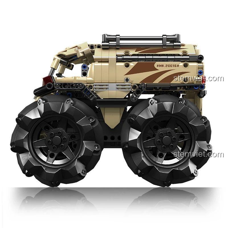 Điểm đặc biệt làm nên tên tuổi của Mould King 20016 Xe địa hình bánh Mecanum chính là khả năng chuyển động độc nhất vô nhị. Hãy quên đi những chiếc xe chỉ biết tiến, lùi, rẽ trái, rẽ phải. Nhờ hệ thống bánh xe Mecanum, cỗ máy này có thể: