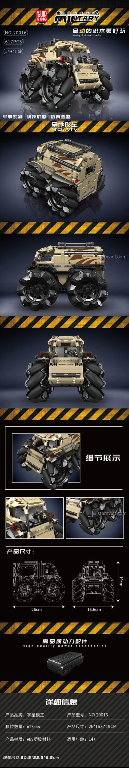 Chào bạn, một người con trai 14 tuổi đầy đam mê khám phá! Có bao giờ bạn tự hỏi làm thế nào một chiếc xe có thể lướt ngang như cua bò hay xoay tròn tại chỗ mà không cần bẻ lái? Câu trả lời nằm ở một phát minh kỹ thuật thiên tài: bánh xe Mecanum. Ra đời từ năm 1973 bởi kỹ sư người Thụy Điển Bengt Ilon, công nghệ này ban đầu chỉ được ứng dụng trong các robot công nghiệp đòi hỏi sự linh hoạt tối đa. Giờ đây, với đồ chơi mô hình Mould King, tinh hoa công nghệ đó đã nằm gọn trong tay bạn. Đây không chỉ là một bộ lắp ráp thông thường, mà là một cánh cửa mở ra thế giới cơ khí chuyển động đầy mê hoặc. Mỗi chi tiết bạn lắp vào là một bước tiến gần hơn đến việc giải mã bí ẩn của chuyển động đa hướng, biến những khái niệm kỹ thuật khô khan thành một cỗ máy địa hình sa mạc cực ngầu mà bạn có thể tự hào trưng bày và điều khiển.