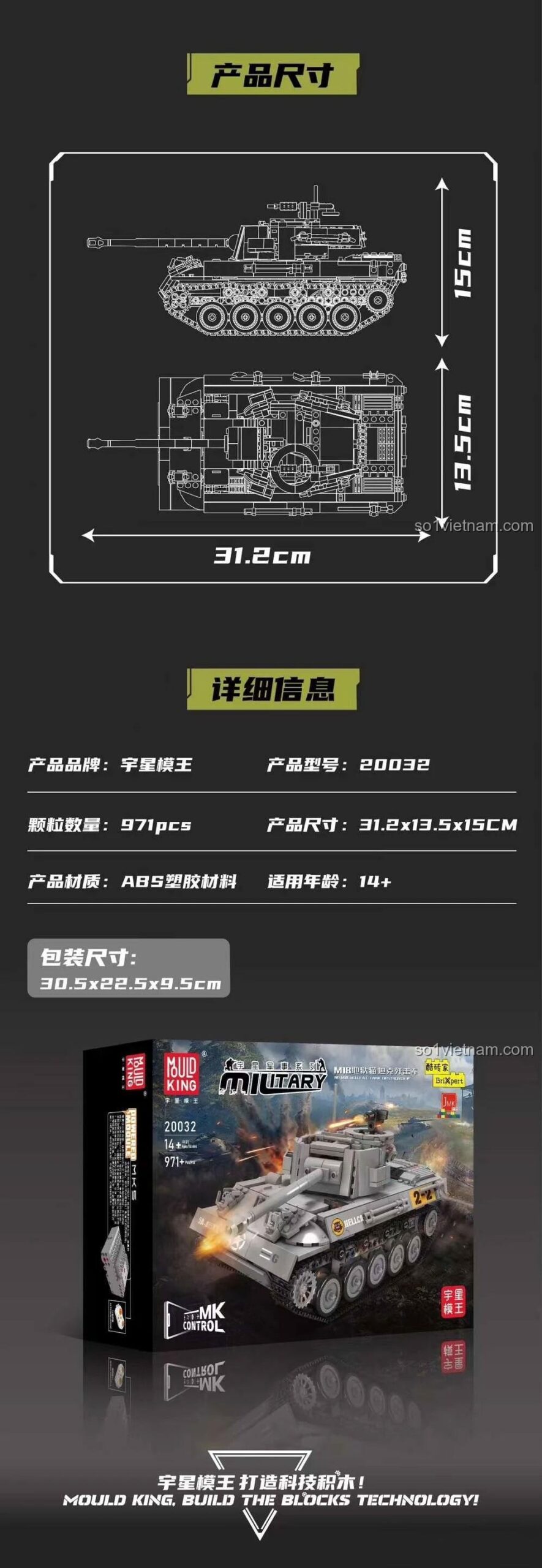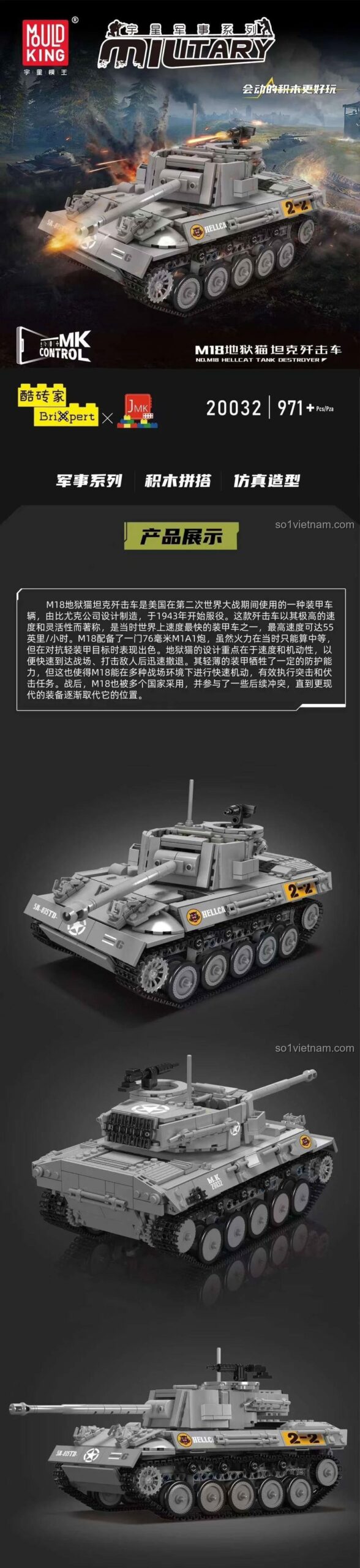 Mould King 20032: Bộ Lắp Ghép Xe Tăng M18 Hellcat Điều Khiển Từ Xa (971 Mảnh)