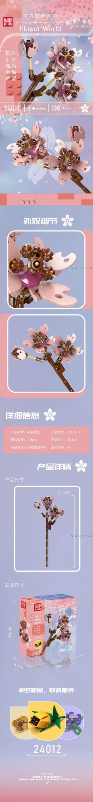 Bộ lắp ghép Mould King 24011 Hoa Anh Đào bao gồm 108 mảnh ghép và được khuyến nghị cho trẻ em từ 8 tuổi trở lên.
