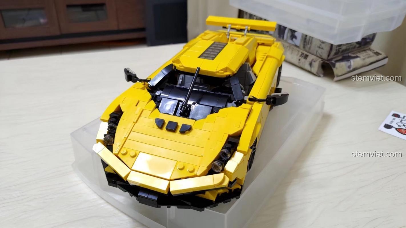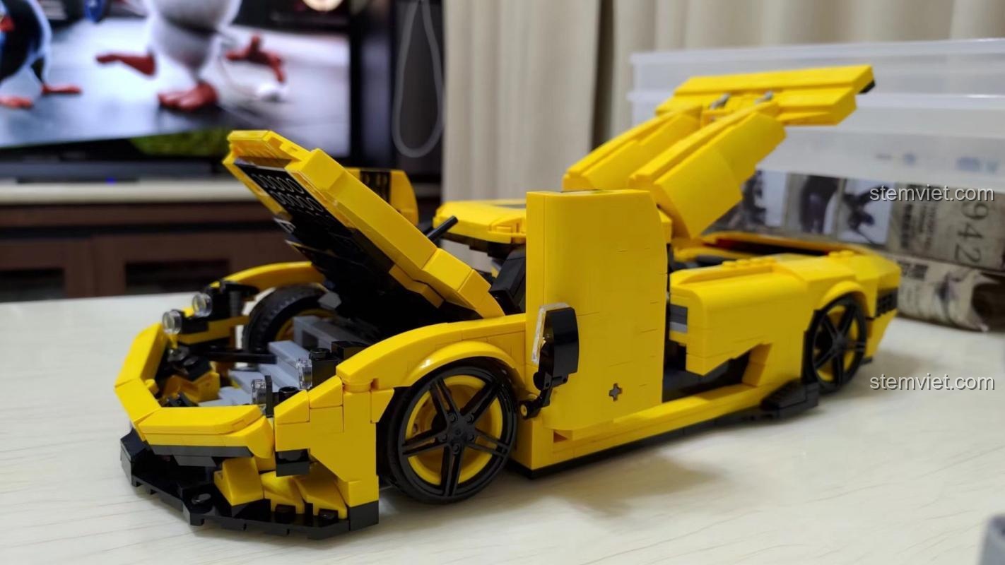 • Cửa xe độc đáo: Điểm nhấn đặc biệt của bộ lắp ghép là cửa xe dạng cánh chim (Scissor doors) có thể mở và xoay, mô phỏng chính xác cơ chế hoạt động của siêu xe thật.