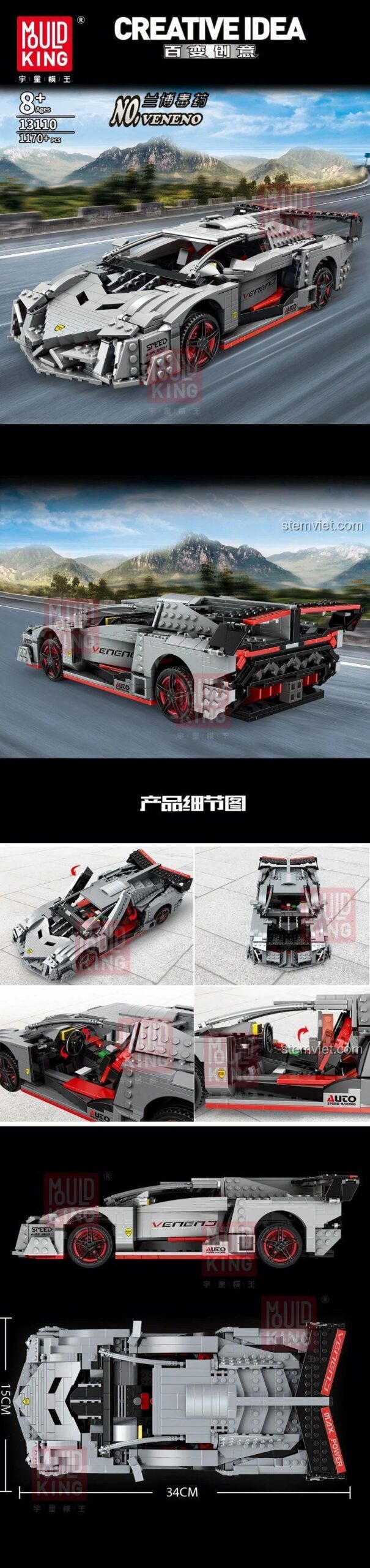 Bộ MouldKing 13110 Lamborghini Veneno được thiết kế để lắp ráp thành một mô hình duy nhất là siêu xe Lamborghini Veneno.