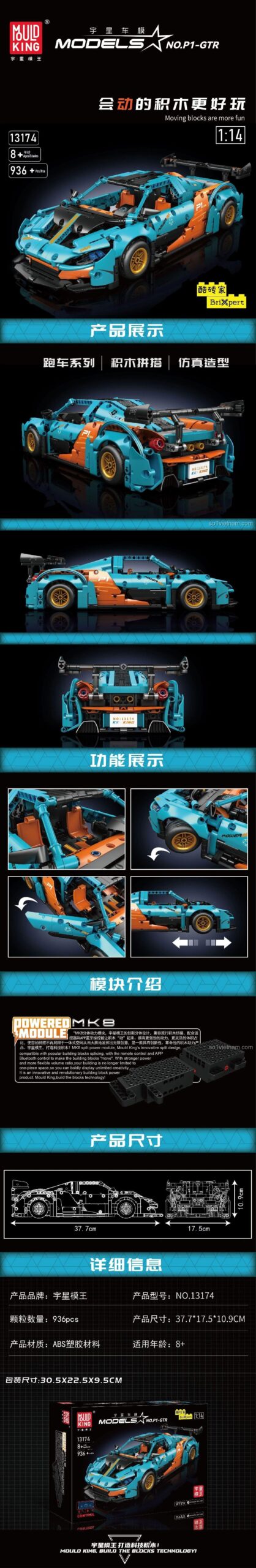 - Kết hợp với các bộ lắp ghép xe khác của MouldKing để tạo thành một bộ sưu tập siêu xe đa dạng.