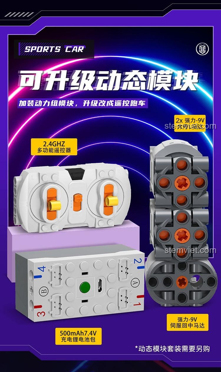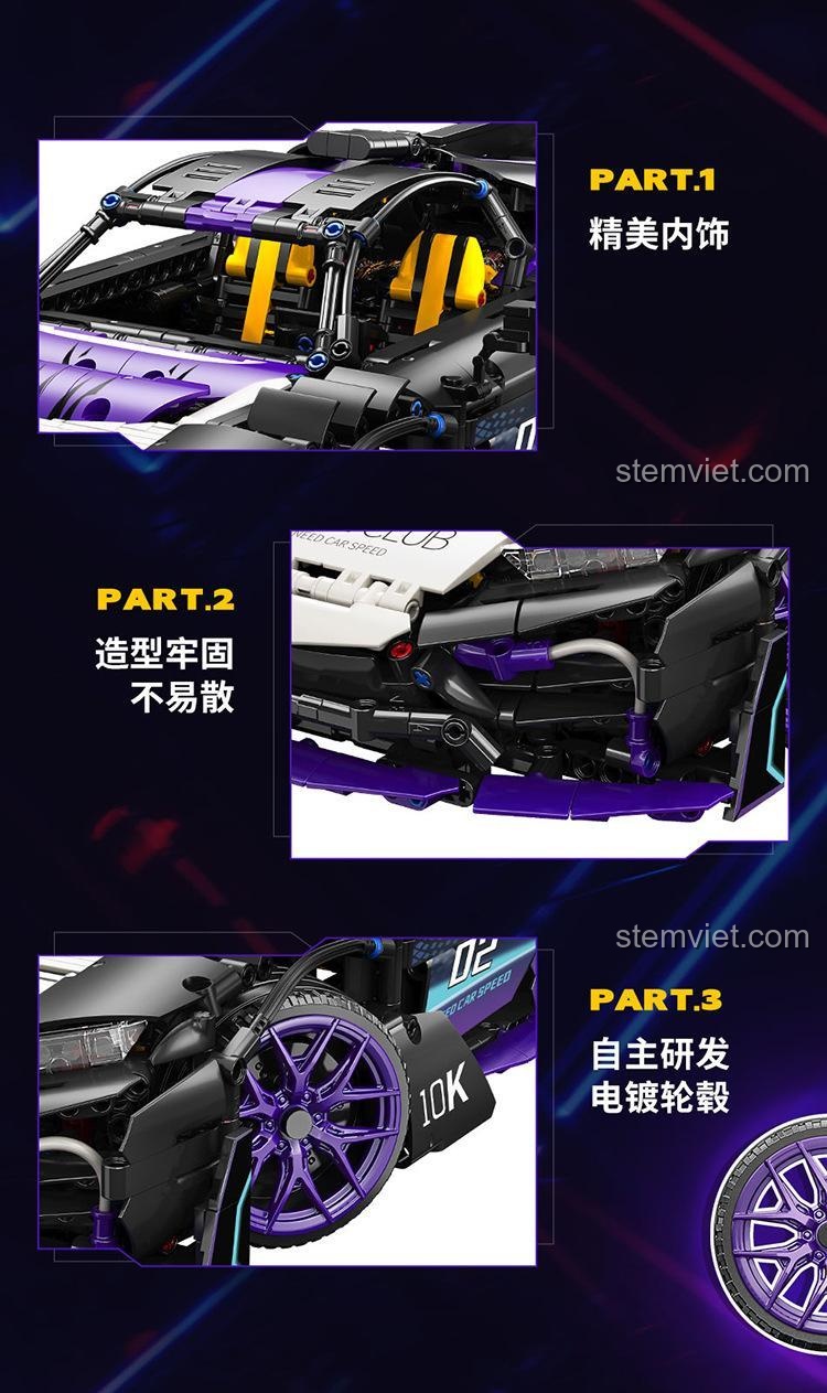 Điểm đặc biệt và đáng giá nhất của bộ sản phẩm này là khả năng nâng cấp thành một chiếc xe điều khiển từ xa (RC) thực thụ. Chỉ cần trang bị thêm bộ module động lực (cần mua riêng), mẹ và bé có thể cùng nhau biến chiếc siêu xe trưng bày thành một “quái vật tốc độ” có thể điều khiển qua tay cầm 2.4GHz hoặc ngay trên ứng dụng điện thoại. Trải nghiệm lắp ráp, nâng cấp và chinh phục tốc độ sẽ là một kỷ niệm khó quên, khơi dậy niềm đam mê kỹ thuật và công nghệ trong con.