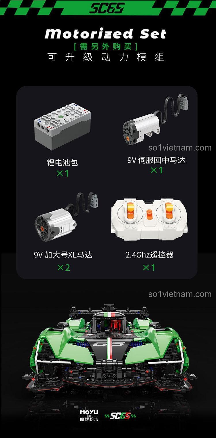Để trải nghiệm đầy đủ tính năng điều khiển từ xa, bạn cần mua thêm bộ động lực (bao gồm động cơ và pin). Các mảnh ghép cơ bản đã có sẵn trong hộp.