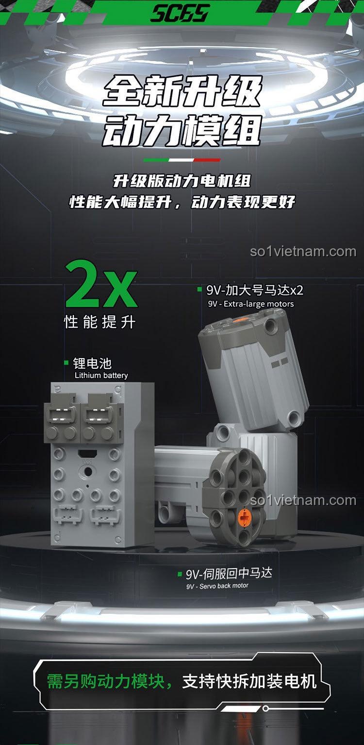 Động cơ mạnh mẽ (cần mua thêm bộ động lực): Bộ sản phẩm có thể nâng cấp với bộ động lực (bao gồm động cơ và pin sạc), biến chiếc mô hình tĩnh thành một chiếc xe điều khiển từ xa mạnh mẽ. Điều này mở ra vô vàn khả năng sáng tạo và trải nghiệm mới.