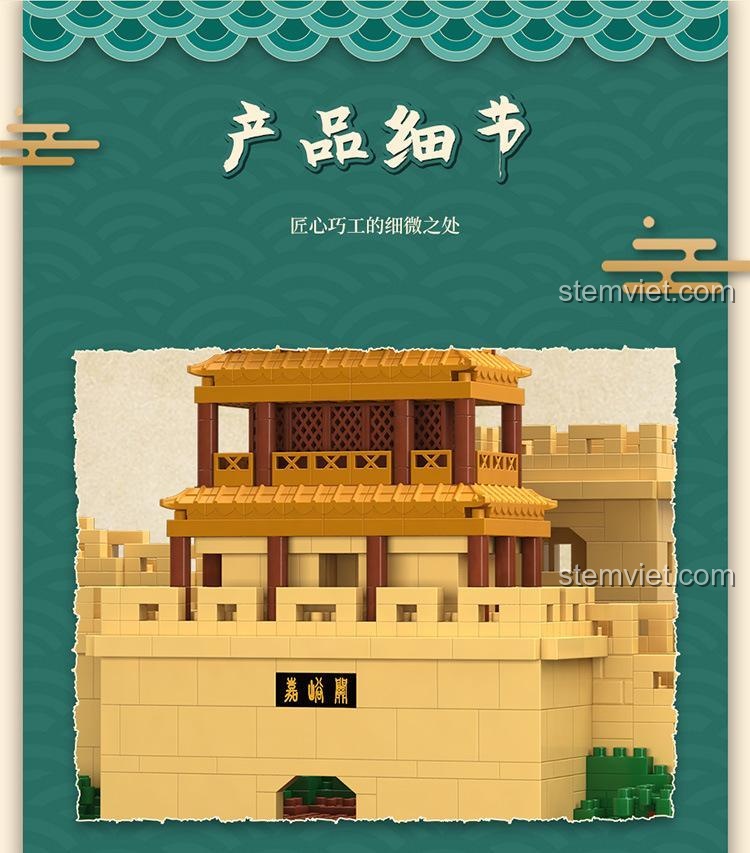 Vạn Lý Trường Thành, biểu tượng vĩ đại của Trung Quốc, là một công trình phòng thủ quân sự khổng lồ được xây dựng qua hàng ngàn năm lịch sử. Trong đó, Gia Dục Quan là một trong những cửa ải quan trọng và được bảo tồn tốt nhất, đánh dấu điểm cuối phía tây của Trường Thành thời nhà Minh. Với đồ chơi mô hình Trường Thành Gia Dục Quan này, bé yêu của bạn sẽ được tái hiện lại một phần lịch sử hào hùng, tìm hiểu về kiến trúc quân sự cổ đại và cảm nhận sự kỳ vĩ của một trong Bảy kỳ quan thế giới mới.