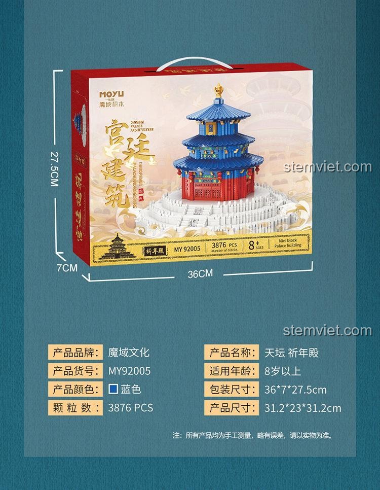 Bộ xếp hình Kiệt tác Vạn Lý Trường Thành Moyu Block được thiết kế với sự tỉ mỉ đáng kinh ngạc, tái hiện chân thực từng chi tiết của Gia Dục Quan. Với màu sắc chủ đạo là vàng của tường thành cổ kính, xanh lá của những ngọn đồi hùng vĩ và nâu của mái ngói, mô hình mang đến một vẻ đẹp hài hòa và sống động. Kích thước mô hình sau khi hoàn thành là 52.8 x 20.8 x 14.7 cm, đủ lớn để trưng bày nhưng vẫn gọn gàng, phù hợp với mọi không gian.