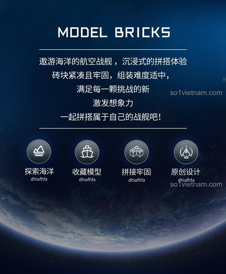 Bộ sản phẩm này được thiết kế để lắp ráp thành một mô hình tàu sân bay duy nhất. Tuy nhiên, với 1154 mảnh ghép, bé hoàn toàn có thể dùng sự sáng tạo của mình để tạo ra những công trình, phương tiện độc đáo khác theo trí tưởng tượng của riêng mình.