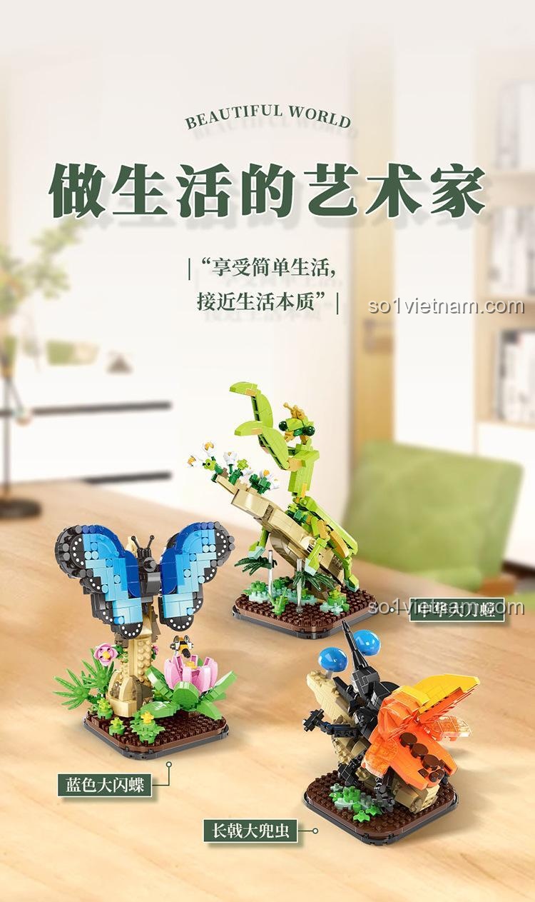 🌟 Có thể kết hợp mô hình Bướm Xanh Lớn với các bộ côn trùng khác của MOYU BLOCK không?