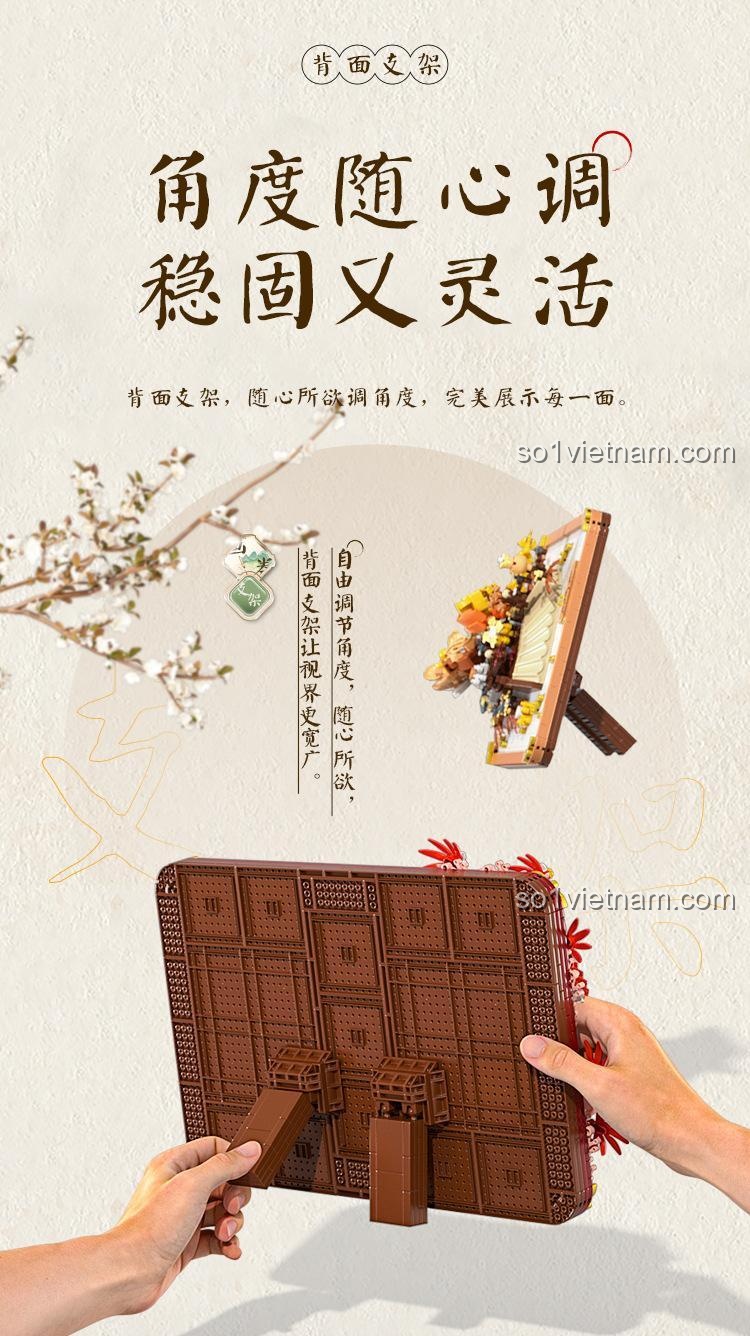 Điểm nhấn đặc biệt của đồ chơi xây dựng Mô hình Quạt Cổ Phong này là Thiết Kế 3D Độc Đáo, cho phép các chi tiết hoa lá nổi bật lên khỏi bề mặt quạt, tạo chiều sâu và sự chân thực. Từng cánh hoa, từng chiếc lá đều được tạo hình cẩn thận, mang đến cảm giác như một tác phẩm điêu khắc thu nhỏ. Ngoài ra, sản phẩm còn đi kèm giá đỡ điều chỉnh góc, giúp bạn dễ dàng trưng bày tác phẩm ở nhiều tư thế khác nhau, phù hợp với mọi không gian nội thất. Đây thực sự là một Tranh Cuộn 3D không chỉ để chơi mà còn để chiêm ngưỡng.