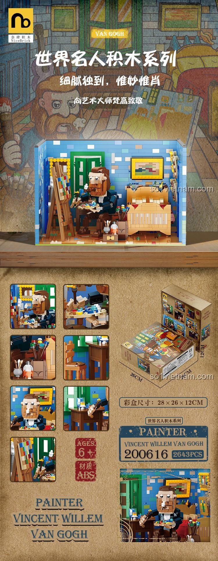 Chào mừng bạn đến với thế giới của những kiệt tác hội họa! Bộ lắp ghép mô hình Vincent Willem Van Gogh NiceBrick 200616 là một hành trình sáng tạo độc đáo, đưa bạn vào không gian làm việc đầy cảm hứng của một trong những danh họa vĩ đại nhất lịch sử. Với 2643 mảnh ghép chi tiết, bạn sẽ có cơ hội tự tay xây dựng nên một tác phẩm nghệ thuật sống động, tái hiện chân thực căn phòng của Van Gogh, nơi những ý tưởng bay bổng và những nét cọ tài hoa đã tạo nên các bức tranh bất hủ.