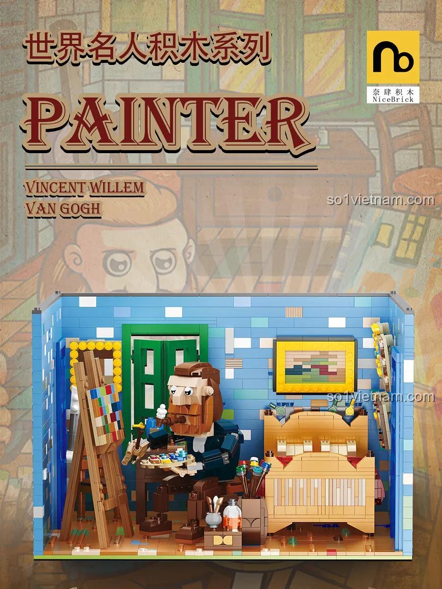 Vincent van Gogh (1853-1890) là một họa sĩ người Hà Lan, được coi là một trong những danh họa vĩ đại nhất trong lịch sử nghệ thuật phương Tây. Ông nổi tiếng với những bức tranh đầy màu sắc, cảm xúc mãnh liệt và phong cách độc đáo. Cuộc đời ông là một hành trình đầy biến động, nhưng tài năng và những đóng góp của ông cho nghệ thuật thì mãi mãi được ghi nhớ. Bộ lắp ghép NiceBrick 200616 không chỉ là một món đồ chơi, mà còn là một cách để chúng ta hiểu thêm về cuộc đời và sự nghiệp của Van Gogh, về niềm đam mê cháy bỏng với nghệ thuật của ông. Khi lắp ráp, bạn sẽ cảm nhận được sự tỉ mỉ trong từng chi tiết, từ chiếc giá vẽ quen thuộc, bảng màu rực rỡ, đến những vật dụng cá nhân đã gắn liền với ông trong quá trình sáng tạo.