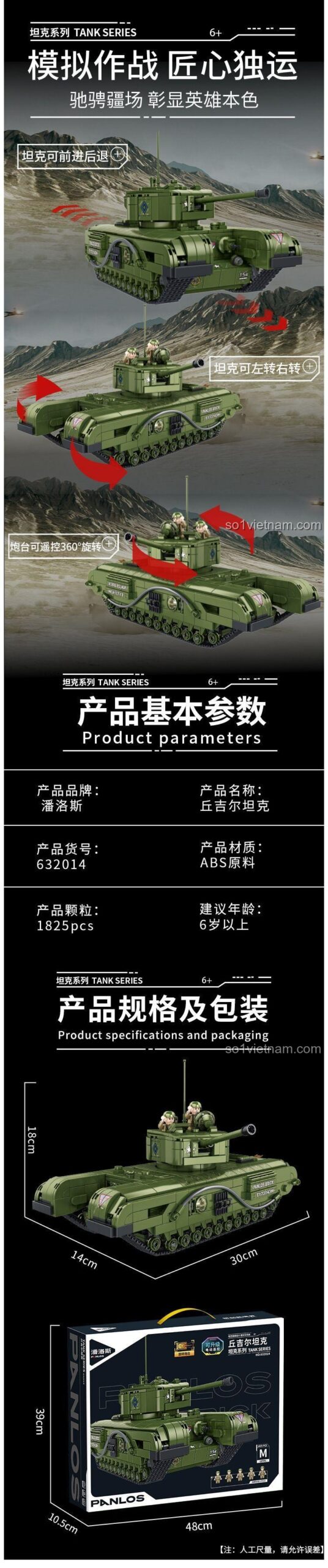Với những tính năng này, xe tăng Churchill Panlos 632014 không chỉ là một mô hình để trưng bày mà còn là một món đồ chơi tương tác, mang lại những giờ phút giải trí đầy hứng khởi.