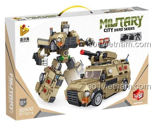 🛡 Panlos 659012: Bộ Đồ Chơi Lắp Ghép Xe Bọc Thép Biến Hình Robot Chiến Đấu – Anh Hùng Thành Phố