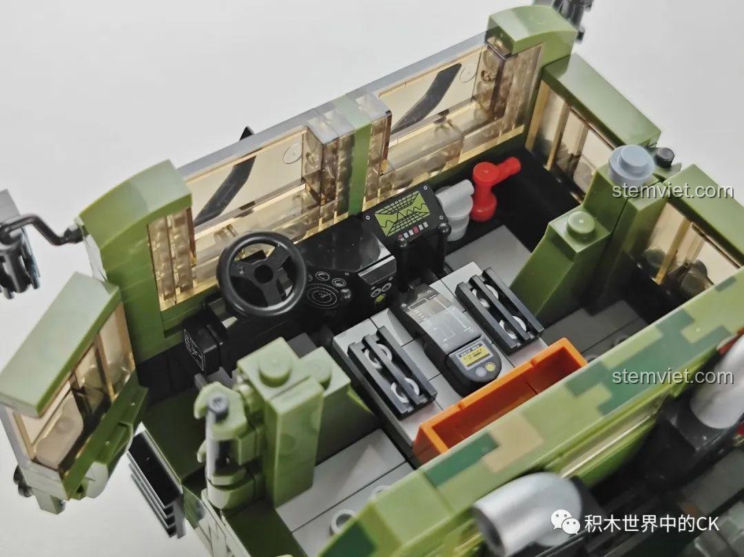 Chiếc xe tăng được tái hiện tỉ mỉ với tháp pháo có thể xoay 360 độ, nòng pháo nâng lên hạ xuống linh hoạt. Hệ thống xích xe được thiết kế để có thể di chuyển mượt mà trên mặt phẳng, mang lại trải nghiệm chơi vô cùng sống động. Các chi tiết nhỏ như súng máy phòng không, ống phóng lựu đạn khói, nắp hầm cho pháo thủ đều được chăm chút kỹ lưỡng.
