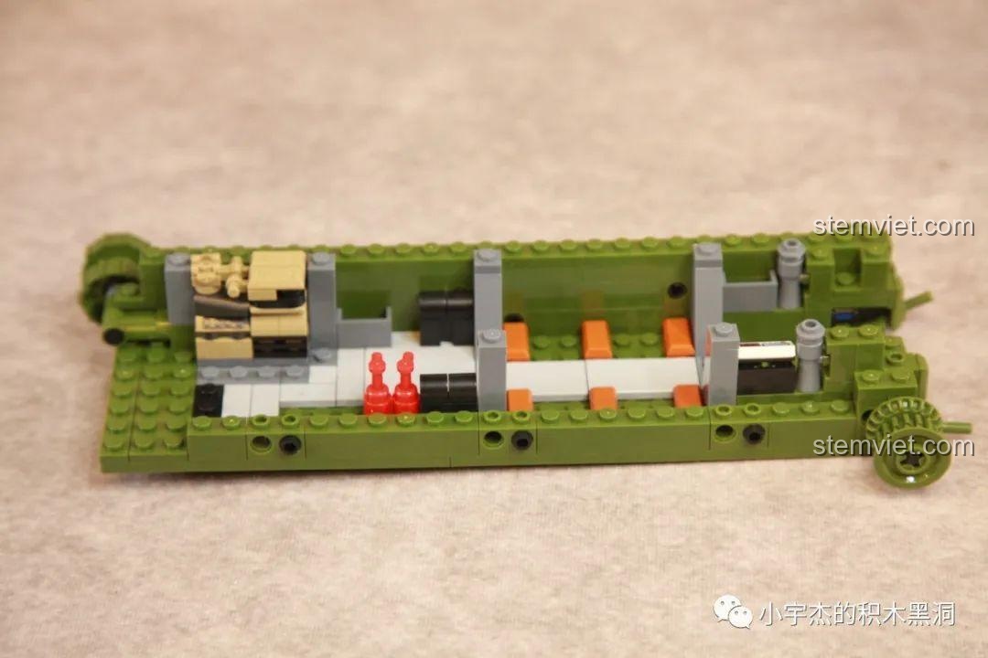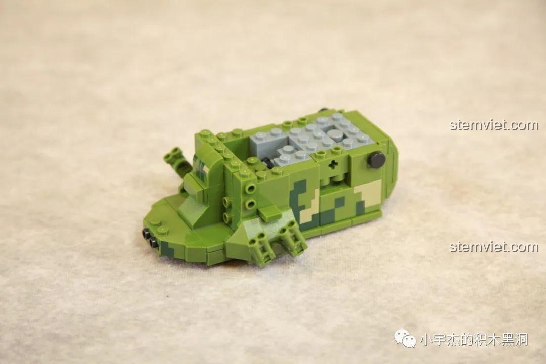 Mô hình rất sống động với nhiều chức năng tương tác: xích xe di chuyển được, tháp pháo xoay 360 độ, hai nòng pháo có thể nâng lên hạ xuống, radar có thể gập lại, và cửa sau mở được. Ngoài ra, bộ sản phẩm còn đi kèm 5 minifigures lính để bé thỏa sức sáng tạo câu chuyện.