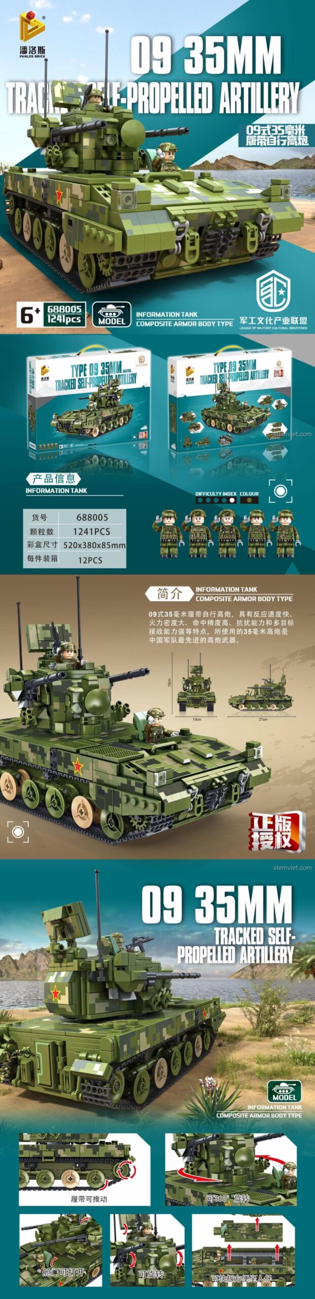 Panlos Brick 688005 – Bộ Lắp Ráp Pháo Tự Hành Phòng Không Type 09 Với Mô Phỏng Chi Tiết Độc Đáo