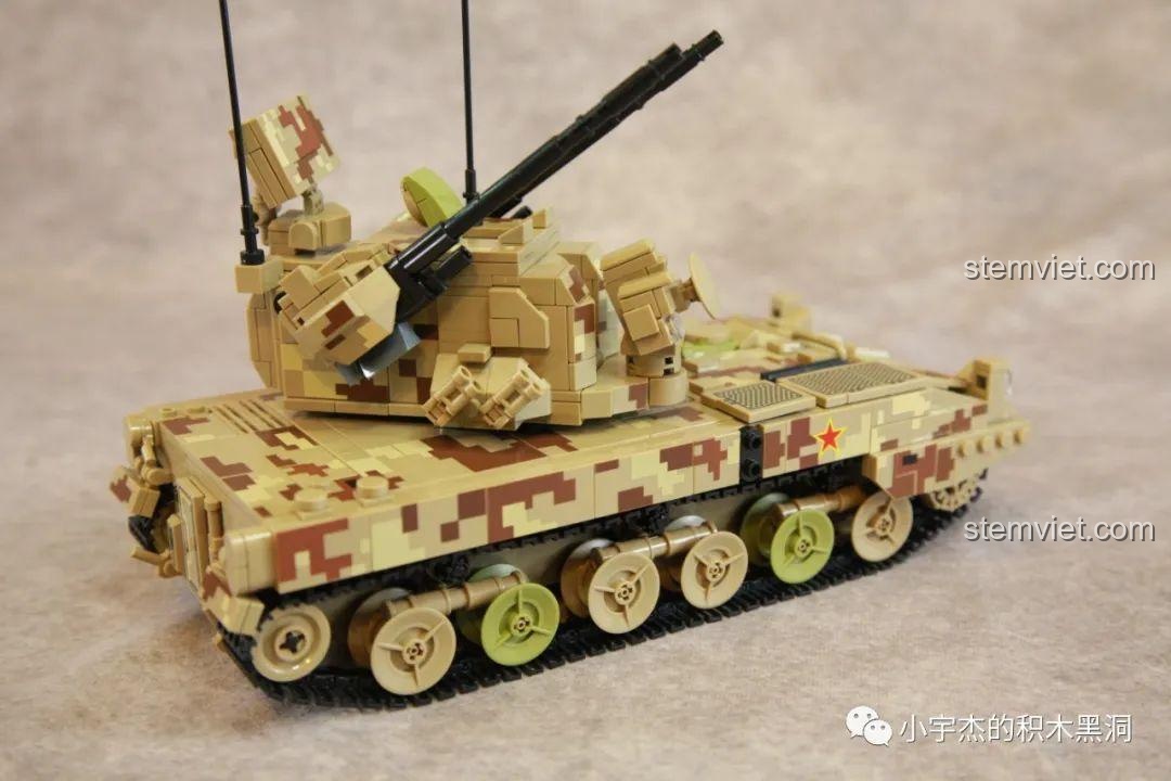 Dựa trên nguyên mẫu PGZ-09 có thật của quân đội, cỗ máy ‘Lá Chắn Thép Bầu Trời’ này được tái hiện một cách ngoạn mục qua 1270 mảnh ghép. Từng chi tiết, từ hệ thống xích di chuyển linh hoạt đến tháp pháo xoay 360 độ, đều được thiết kế tỉ mỉ, khơi dậy niềm đam mê khám phá và chinh phục trong mỗi đứa trẻ.