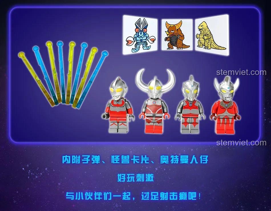 Đây chính là món quà sinh nhật, quà Tết Thiếu Nhi 1/6 hay phần thưởng học sinh giỏi không thể tuyệt vời hơn dành cho bé trai nhà bạn! Để niềm vui của bé thêm trọn vẹn, khi mua bộ sản phẩm Panlos Brick 690033 ngay hôm nay, Kho đồ chơi trẻ em xin dành tặng một gói vũ khí và phụ kiện ngẫu nhiên cho cả 4 minifigures Ultraman. Hãy biến các siêu anh hùng của bé trở nên ngầu hơn, sẵn sàng hơn cho mọi trận chiến!