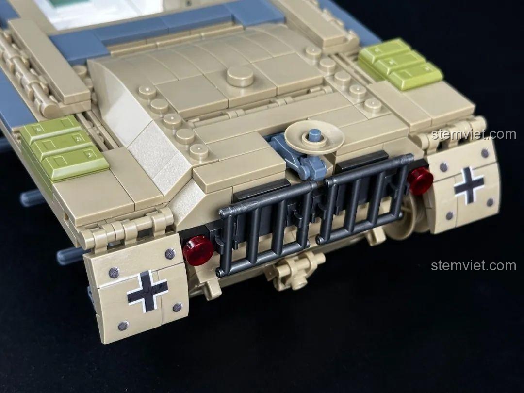 Set đồ chơi 632004 Xe Tăng M60 Magach không chỉ là một mô hình tĩnh mà còn sở hữu nhiều tính năng đặc biệt, mang đến trải nghiệm chơi đầy hấp dẫn. Điểm nhấn nổi bật nhất chính là hệ thống giáp phản ứng nổ (ERA) được tái hiện chi tiết trên tháp pháo và thân xe, giúp bé hiểu hơn về công nghệ bảo vệ xe tăng hiện đại. Con lăn phá mìn đi kèm không chỉ là một phụ kiện trang trí mà còn có thể tháo rời và gắn vào phía trước xe, mô phỏng khả năng dọn đường an toàn trong chiến trường. Tháp pháo có thể xoay 360 độ linh hoạt, cùng với nòng pháo có khả năng nâng hạ, cho phép bé tái hiện các tình huống chiến đấu chân thực. Bên cạnh đó, mô hình còn có nội thất chi tiết và động cơ mô phỏng, khuyến khích bé khám phá cấu trúc bên trong của một chiếc xe tăng. Với 6 minifigure lính đi kèm, bé có thể tạo ra những câu chuyện và trận chiến hoành tráng, phát huy tối đa trí tưởng tượng và khả năng nhập vai.