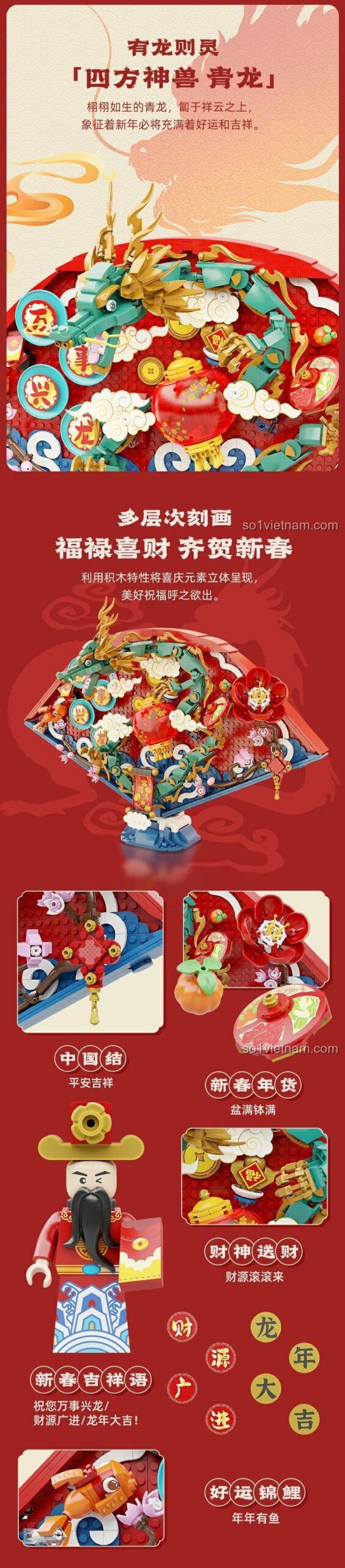 Màu sắc chủ đạo của bộ đồ chơi mô hình Pantasy 18010 là Đỏ, Vàng, Xanh dương, Xanh lá và Trắng, tạo nên một tổng thể hài hòa, rực rỡ và đậm chất lễ hội. Thiết kế 3D nổi bật không chỉ mang lại chiều sâu thị giác mà còn tạo cảm giác sống động, như thể chú Rồng đang thực sự bay lượn. Mỗi mảnh ghép đều được tính toán kỹ lưỡng để tạo nên một tác phẩm nghệ thuật hoàn chỉnh, thể hiện sự khéo léo và tinh tế của người lắp ráp. Đây chắc chắn sẽ là một điểm nhấn độc đáo, thu hút mọi ánh nhìn trong không gian sống của bạn, đặc biệt là trong dịp Tết Nguyên Đán.