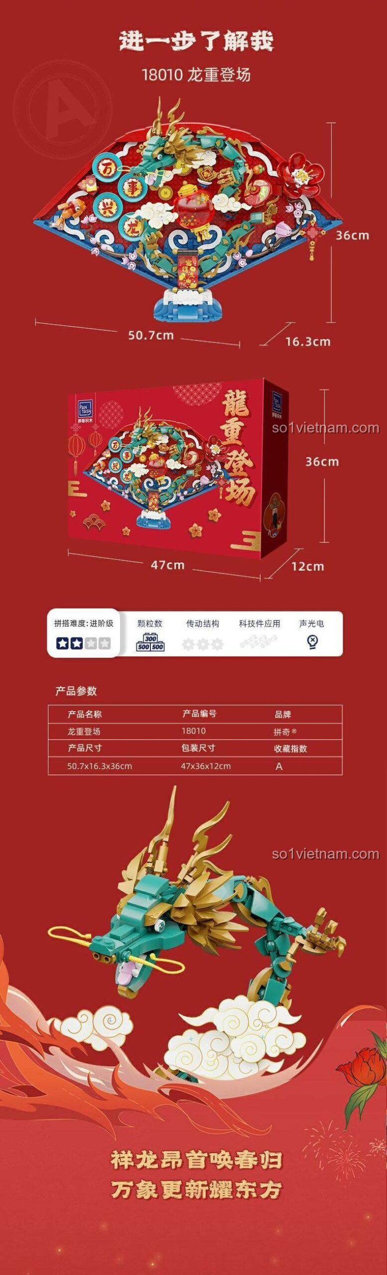 Hãy sắm ngay bộ lắp ghép Pantasy 18010 Quạt Rồng Đón Xuân 3D để mang Rồng Vàng May Mắn về nhà, đón một năm mới an khang thịnh vượng và tràn đầy niềm vui!