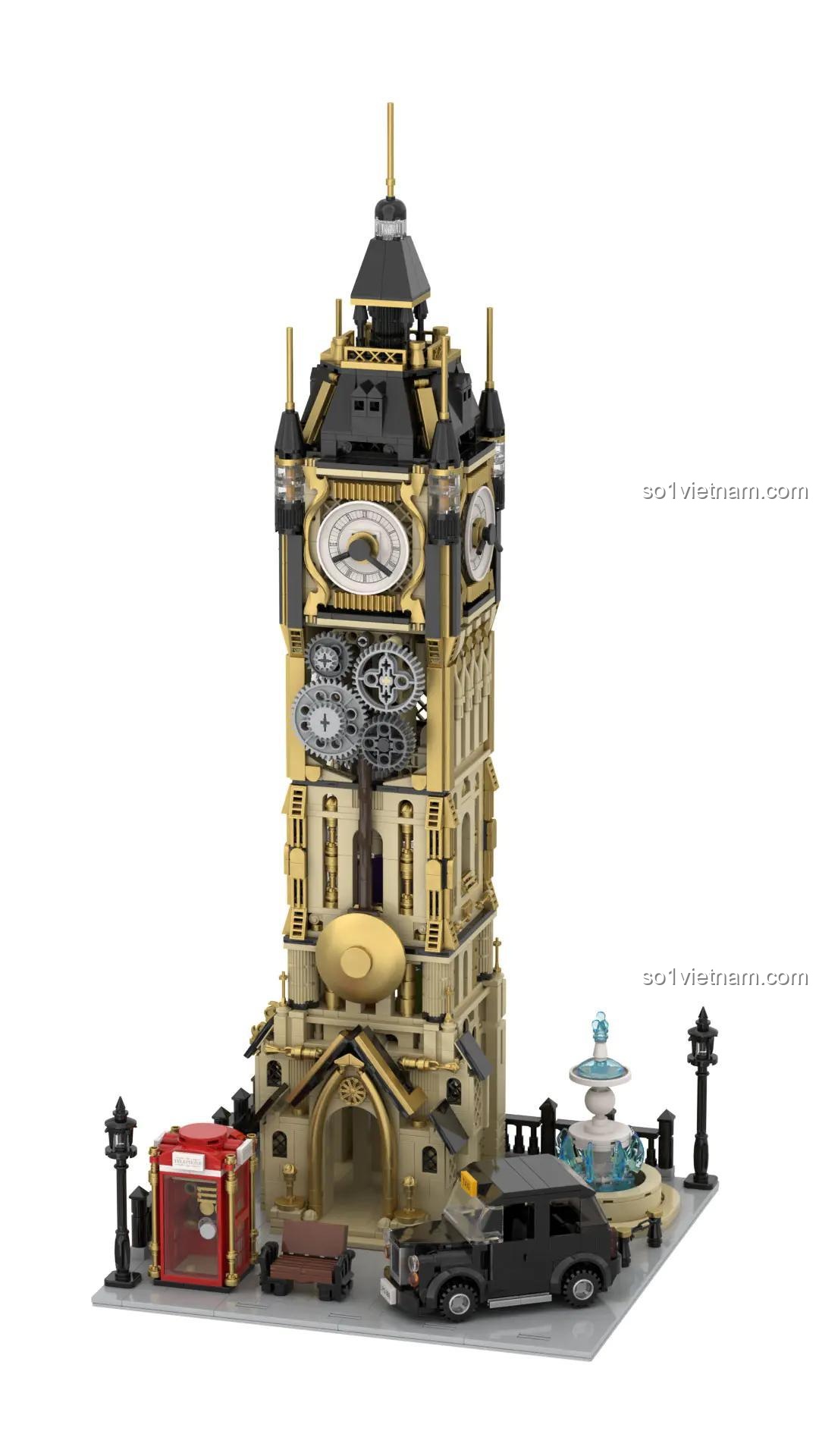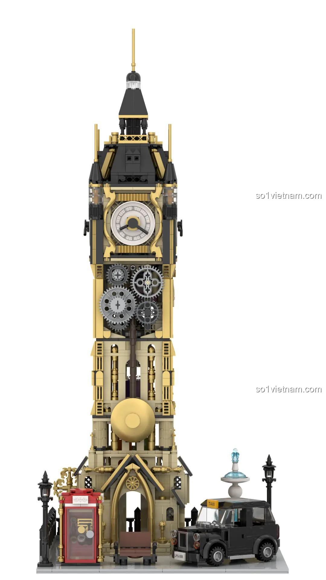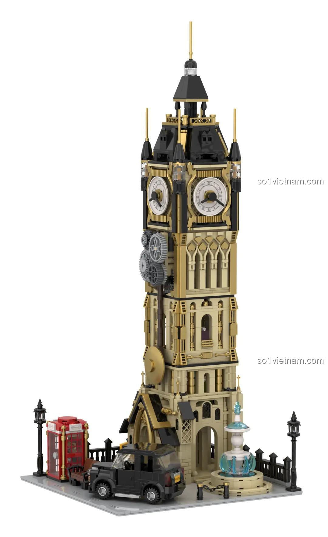 Điểm nhấn đặc biệt của bộ lắp ghép này chính là cơ chế truyền động phức tạp bên trong tháp. Với các bánh răng được thiết kế tinh vi và bộ phận hồi chuyển, mô hình không chỉ đẹp về hình thức mà còn mang đến sự sống động và chân thực. Bạn có thể điều chỉnh thời gian trên cả bốn mặt đồng hồ, mang lại cảm giác như đang vận hành một cỗ máy thời gian thực thụ. Sự kết hợp giữa kiến trúc cổ điển và cơ khí Steampunk tạo nên một sản phẩm độc đáo, thu hút mọi ánh nhìn và là niềm tự hào cho bất kỳ ai sở hữu nó.