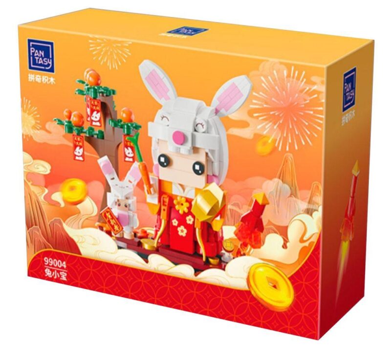Hãy biến góc học tập hay phòng khách của gia đình bạn trở nên rực rỡ và ấm cúng hơn trong dịp Tết này với đồ chơi mô hình Mô hình trang trí Tết. Tác phẩm này là sự kết hợp hoàn hảo giữa phong cách thiết kế BrickHeadz hiện đại và nét văn hóa truyền thống. Chú Thỏ Ngọc lớn, trong trang phục lễ hội màu đỏ và vàng, toát lên vẻ trang nghiêm nhưng không kém phần đáng yêu. Bên cạnh là một chú thỏ con tinh nghịch cầm củ cà rốt, tạo nên khung cảnh ‘Chuyện tốt nhân đôi’. Toàn bộ mô hình được đặt trên một chiếc đế hình trống hội màu đỏ may mắn, viền vàng sang trọng. Điểm nhấn đặc biệt là cây quất nhỏ trĩu quả, những thỏi vàng lấp lánh và các câu đối được in sắc nét với lời chúc ‘Đại Cát Đại Lợi’, ‘Đại Triển Hồng Thố’. Với kích thước 17×7.4x12cm, mô hình này đủ nhỏ gọn để trưng bày ở bất cứ đâu, nhưng cũng đủ nổi bật để thu hút mọi ánh nhìn, mang không khí xuân tràn ngập khắp căn nhà.