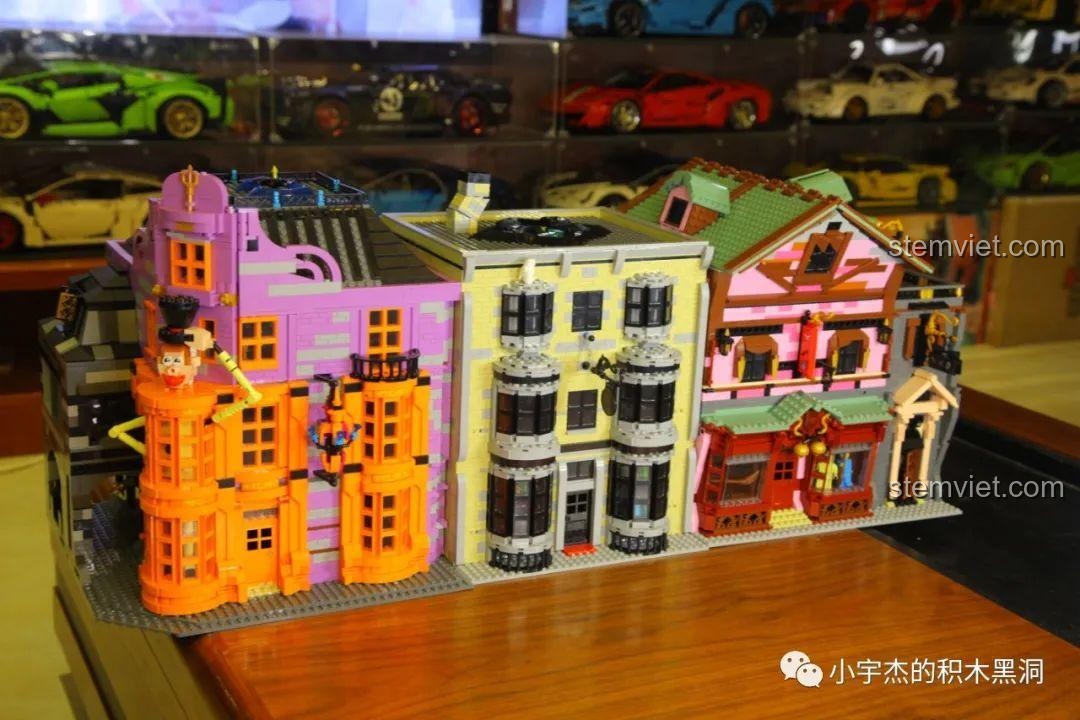 1. Kết hợp với các bộ Hẻm Xéo khác của Mould King (như Ngân hàng Gringotts, Tiệm Giỡn W³) để tạo thành một sa bàn hoàn chỉnh.