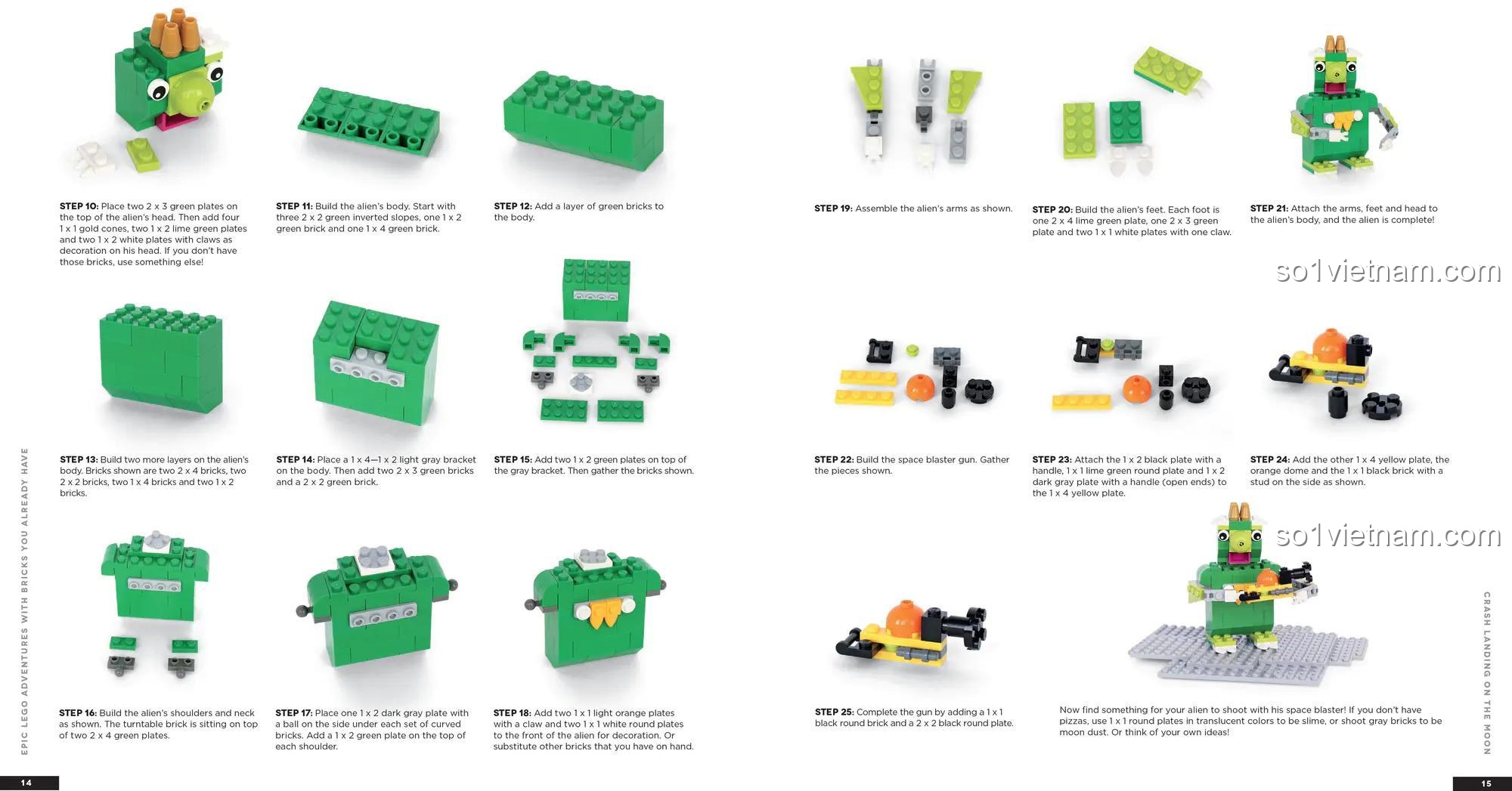 • Sáng tạo ý tưởng và Tưởng tượng: Cuốn sách cung cấp vô số ý tưởng và kịch bản chơi, khuyến khích bé tự do sáng tạo, biến những viên gạch thành bất cứ thứ gì bé muốn, từ tàu vũ trụ, xe địa hình đến những sinh vật kỳ lạ.