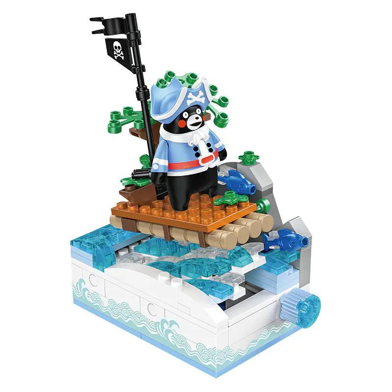 A: Đồ chơi lắp ráp Gấu Kumamon nổi bật với thiết kế mô hình trưng bày độc đáo, tái hiện Kumamon trong trang phục cướp biển trên bè gỗ giữa ghềnh thác, kích thích trí tưởng tượng và phù hợp để trang trí.