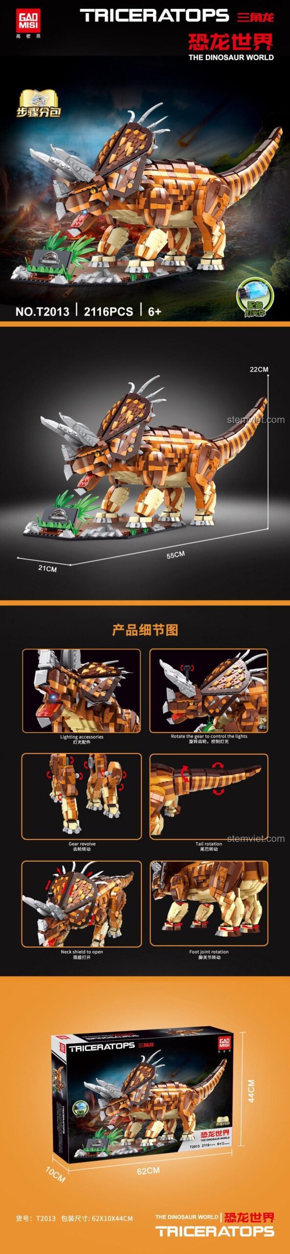 ⚙️ Khám Phá Những Tính Năng Độc Đáo Của bộ lắp ghép Khủng long ba sừng GAOMISI!