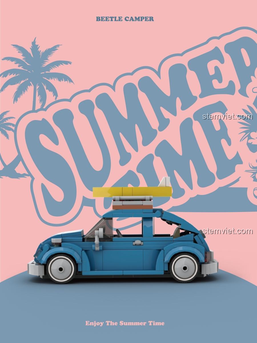Bộ xếp hình Pinbo PB8805 mang đến một mô hình xe Volkswagen Beetle cắm trại với sự tỉ mỉ đáng kinh ngạc trong từng chi tiết. Chiếc xe nổi bật với màu xanh dương chủ đạo, gợi nhớ đến bầu trời trong xanh và biển cả bao la của mùa hè. Trên nóc xe, một chiếc ván lướt sóng màu vàng rực rỡ được gắn chắc chắn, sẵn sàng cho những con sóng lớn, tạo nên một điểm nhấn đầy cá tính và đúng chất “Summer Time”.