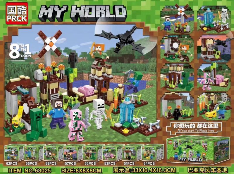 PRCK 63025: Bộ Lắp Ghép Minecraft: Căn Cứ Gió Bay 8 Kiểu (454 Mảnh) – Thế Giới Khối Vuông