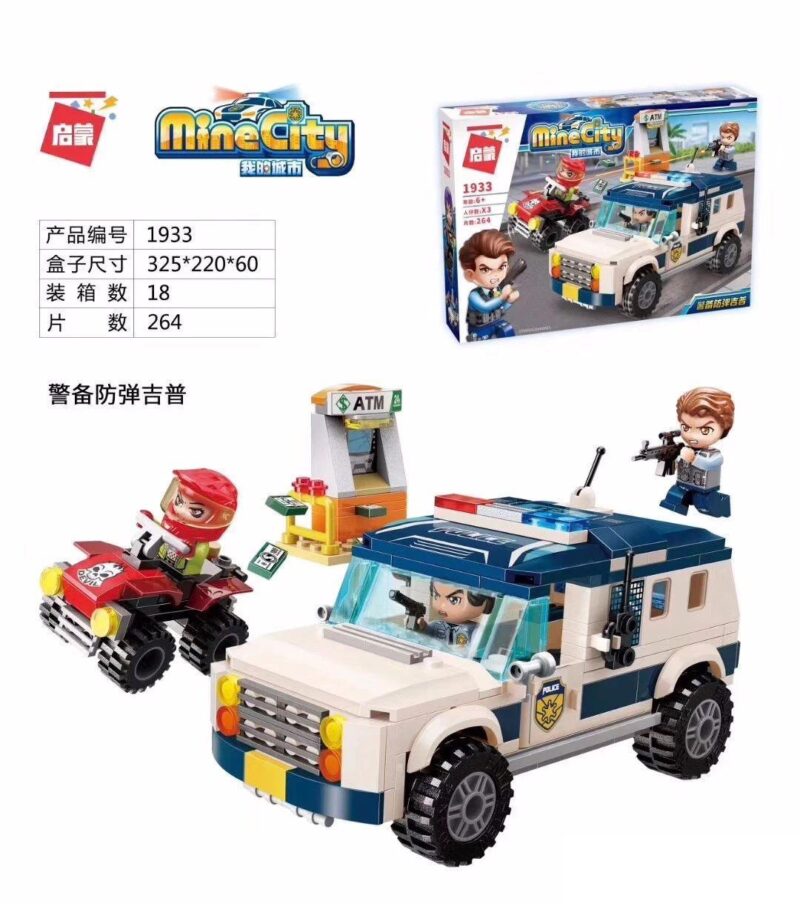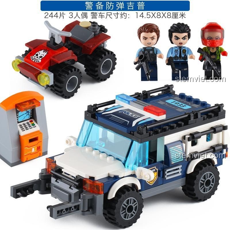 QMAN 1933 – Đồ Chơi Lắp Ráp Xe Jeep Chống Đạn Cảnh Sát Thành Phố (244 Mảnh) Có 3 Minifigures