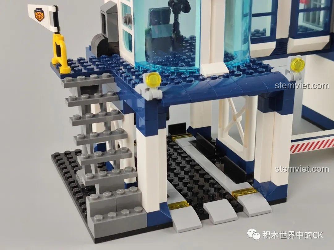 Trụ sở Cảnh sát MineCity 1937 được thiết kế với sự tỉ mỉ đáng kinh ngạc, tái hiện chân thực một đồn cảnh sát hiện đại. Với màu sắc chủ đạo là xanh dương, trắng và xám, mô hình toát lên vẻ uy nghiêm và chuyên nghiệp. Từng chi tiết, từ tháp điều khiển xoay 360 độ, cổng chắn đường nâng hạ linh hoạt, đến khu vực nhà tù kiên cố với cửa mở/đóng, đều được chăm chút kỹ lưỡng, mang đến trải nghiệm lắp ráp và chơi chân thực nhất.