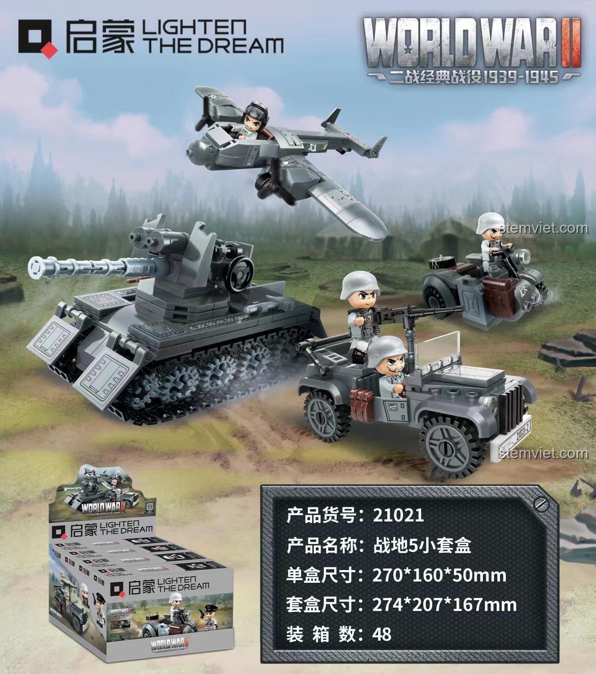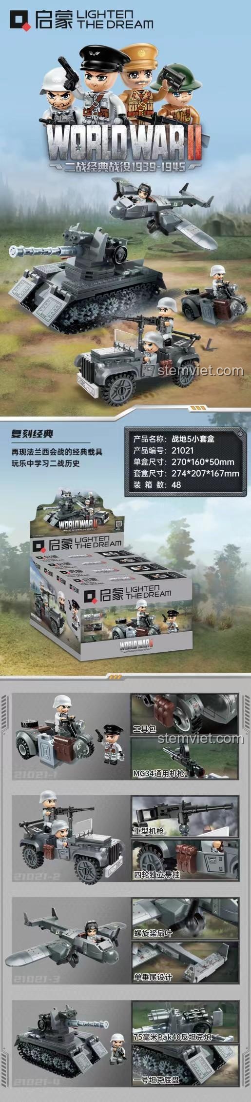 Mẹ có biết, việc cho con trai 6 tuổi tiếp xúc với các mô hình lịch sử không chỉ là một trò chơi, mà còn là cách tuyệt vời để khơi dậy trí tò mò và niềm đam mê tìm hiểu thế giới? Với bộ đồ chơi mô hình QMAN 21021, bé sẽ không chỉ lắp ráp những khối nhựa, mà là đang tái hiện lại cả một giai đoạn lịch sử quan trọng – Thế Chiến Thứ II. Bộ sưu tập này không phải là những câu chuyện khô khan trong sách vở, mà là một trải nghiệm sống động, nơi bé được tự tay chỉ huy một đội quân tinh nhuệ với đầy đủ các phương tiện chiến đấu kinh điển của quân đội Đức. Từ chiếc xe tăng Panzer II lừng lẫy, chiếc xe jeep Kübelwagen cơ động, chiếc mô tô 3 bánh thoăn thoắt cho đến chiếc máy bay Messerschmitt Bf 109 oai hùng trên bầu trời. Đây là cơ hội để Mẹ và bé cùng nhau khám phá, kể cho bé nghe những câu chuyện về lòng dũng cảm, về chiến thuật và lịch sử, biến giờ chơi thành giờ học đầy hứng khởi.
