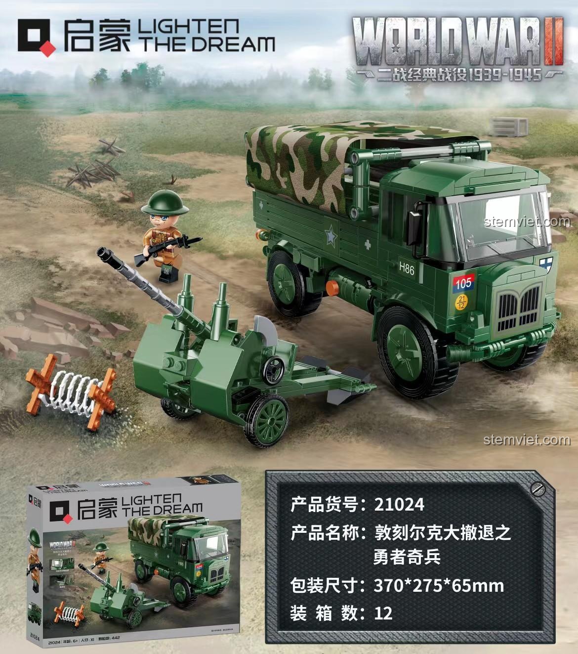 Hãy cùng bé quay ngược dòng thời gian, trở về một trong những thời khắc kịch tính nhất của Thế chiến thứ II với bộ lắp ráp Xe tải quân sự QMAN 21024. Đây không chỉ là một món đồ chơi, mà là một cánh cổng dẫn đến trang sử hào hùng về cuộc di tản Dunkirk năm 1940. Mẹ có con trai 6 tuổi sẽ thấy bé không chỉ say sưa lắp ghép mà còn tò mò tìm hiểu về sự kiện lịch sử vĩ đại này. Bé sẽ được tự tay chỉ huy một đơn vị dũng cảm, điều khiển chiếc xe tải vượt qua làn bom đạn, kéo theo khẩu pháo phòng không để bảo vệ đồng đội. Mỗi mảnh ghép là một bước chân vào cuộc phiêu lưu, nơi lòng dũng cảm, trí thông minh và tinh thần đồng đội được tôn vinh. Sản phẩm khơi dậy niềm đam mê lịch sử, biến những bài học khô khan thành trải nghiệm nhập vai sống động và đầy cảm xúc. Hãy trao cho bé cơ hội để trở thành một phần của huyền thoại, để hiểu rằng lòng dũng cảm có thể làm nên những điều kỳ diệu.