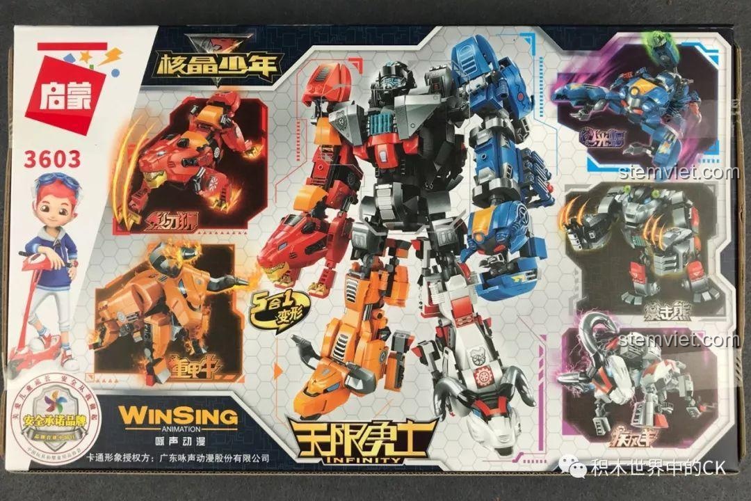 Để tạo thành robot Infinite Warrior hoàn chỉnh, bạn cần sưu tập đủ 5 bộ trong series Hạch Tinh Thiếu Niên của QMAN, bao gồm: 3601, 3602, 3603 (sản phẩm này), 3604, và 3605.