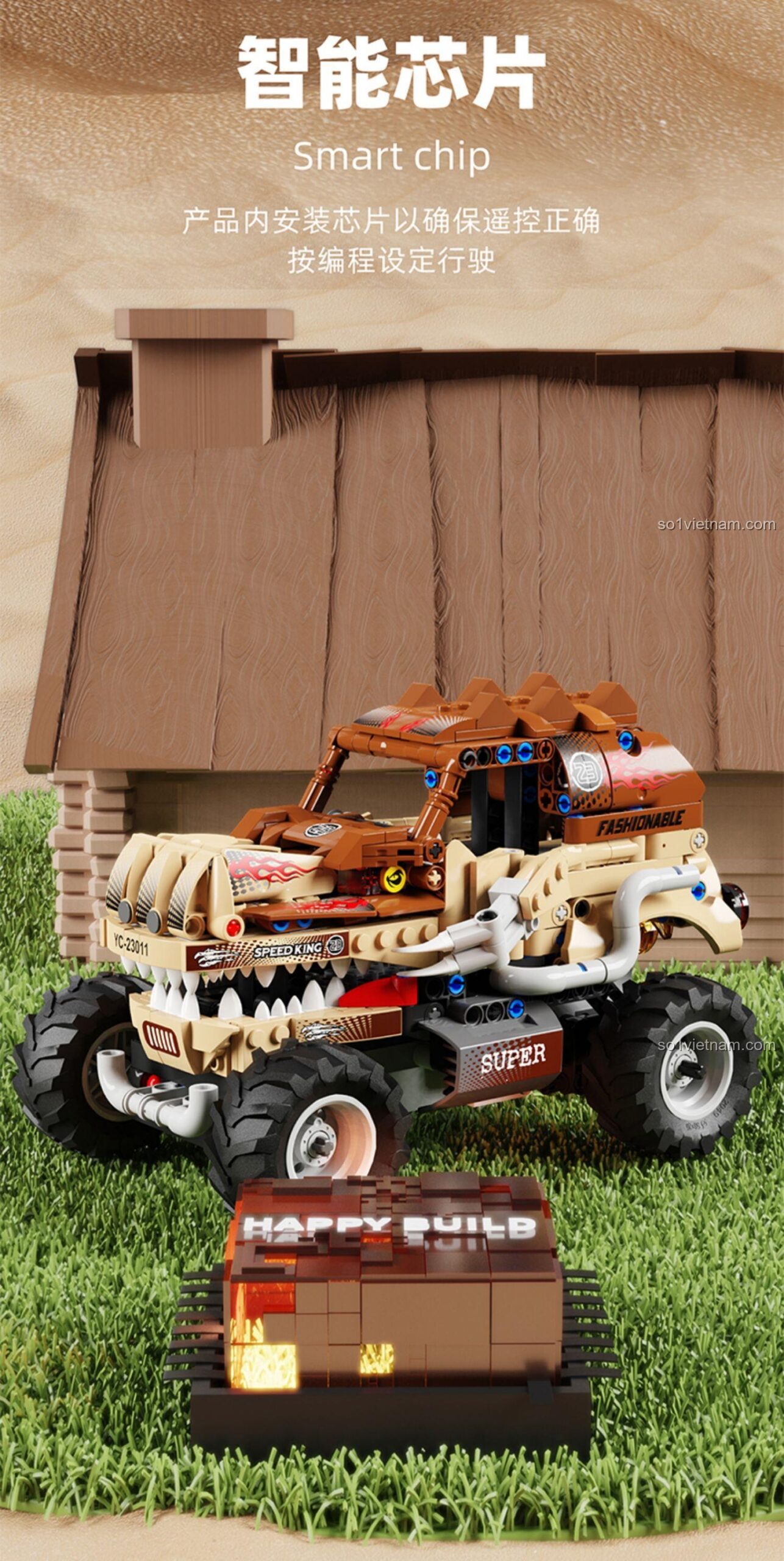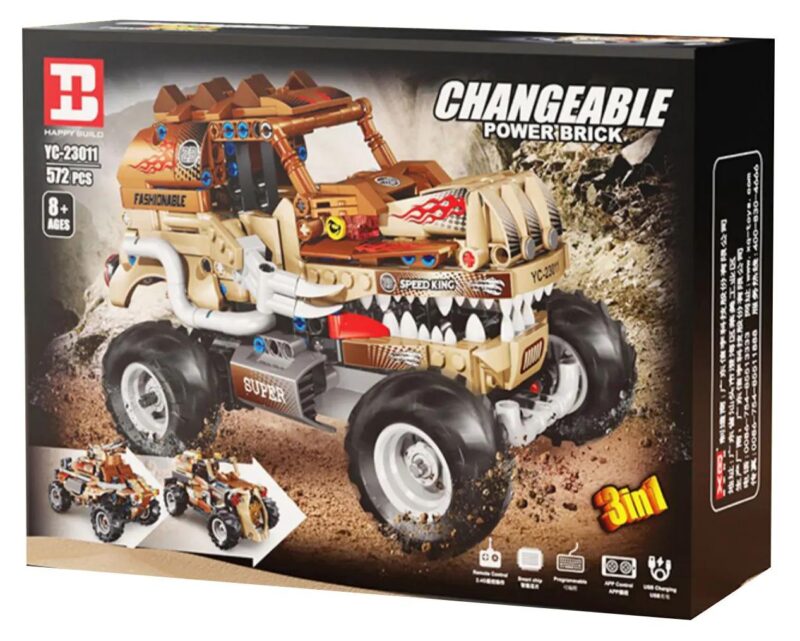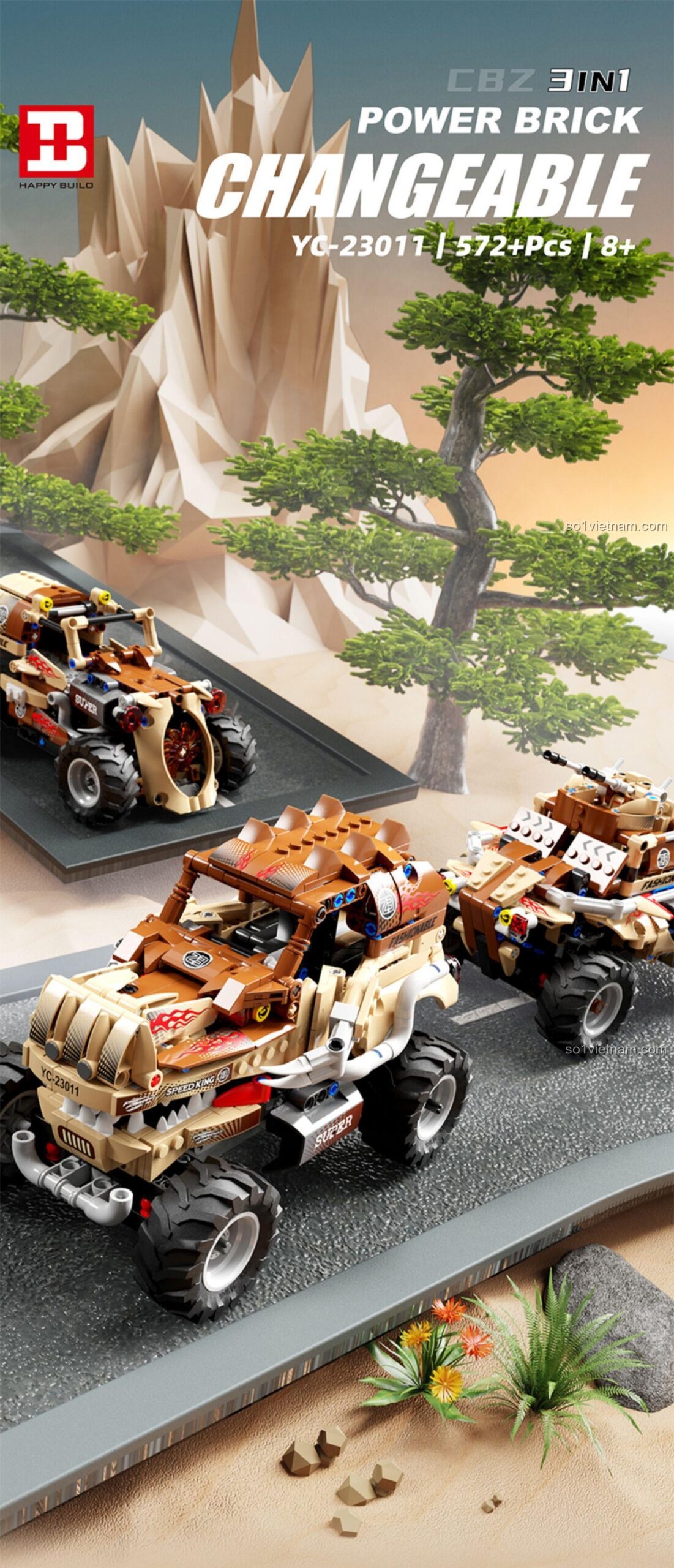 Quái Thú Biến Hình & Điều Khiển Từ Xa & Lập Trình Được: Khám Phá Ngay Happy Build YC-23011 Xe Địa Hình Khủng Long T-Rex (572 mảnh)
